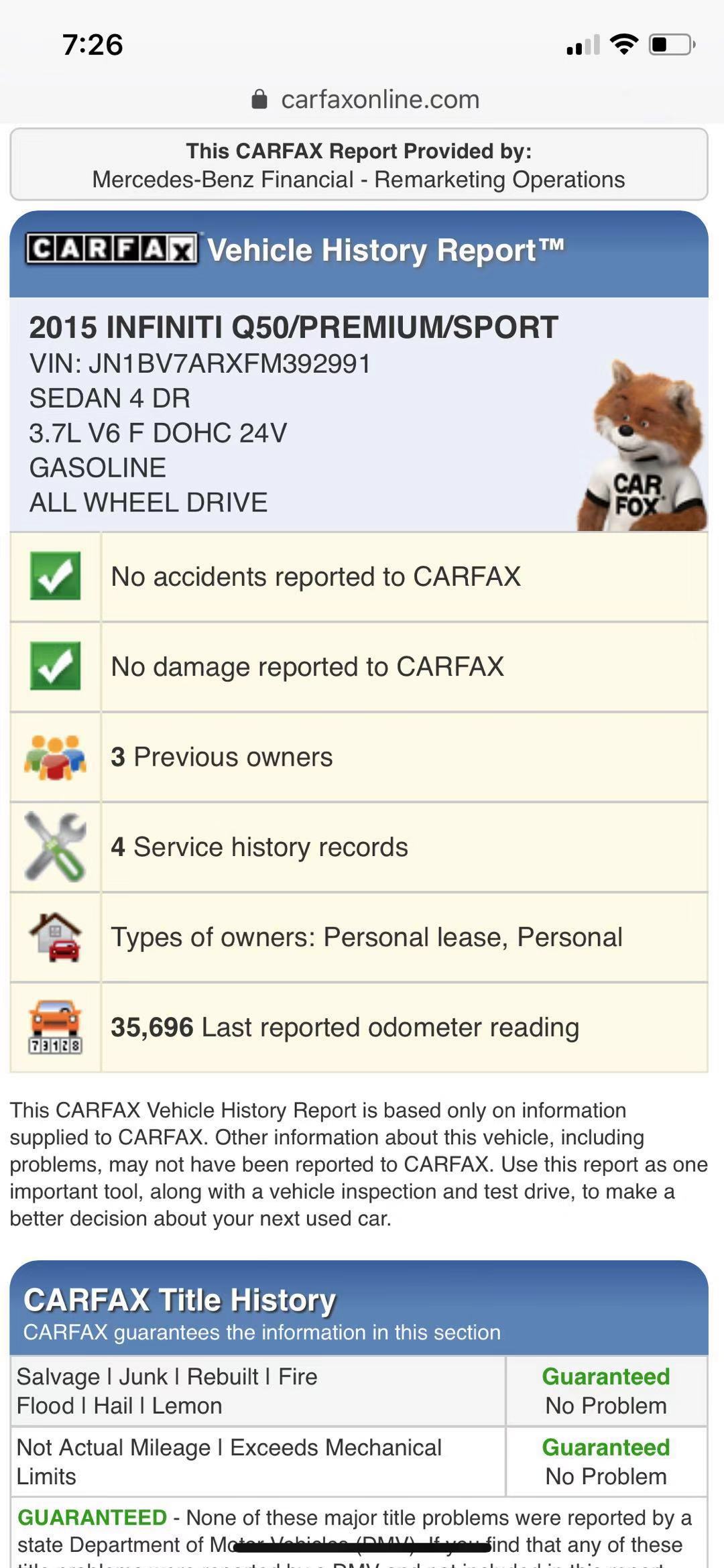 2015 Infiniti Q50 38500miles 私人 title