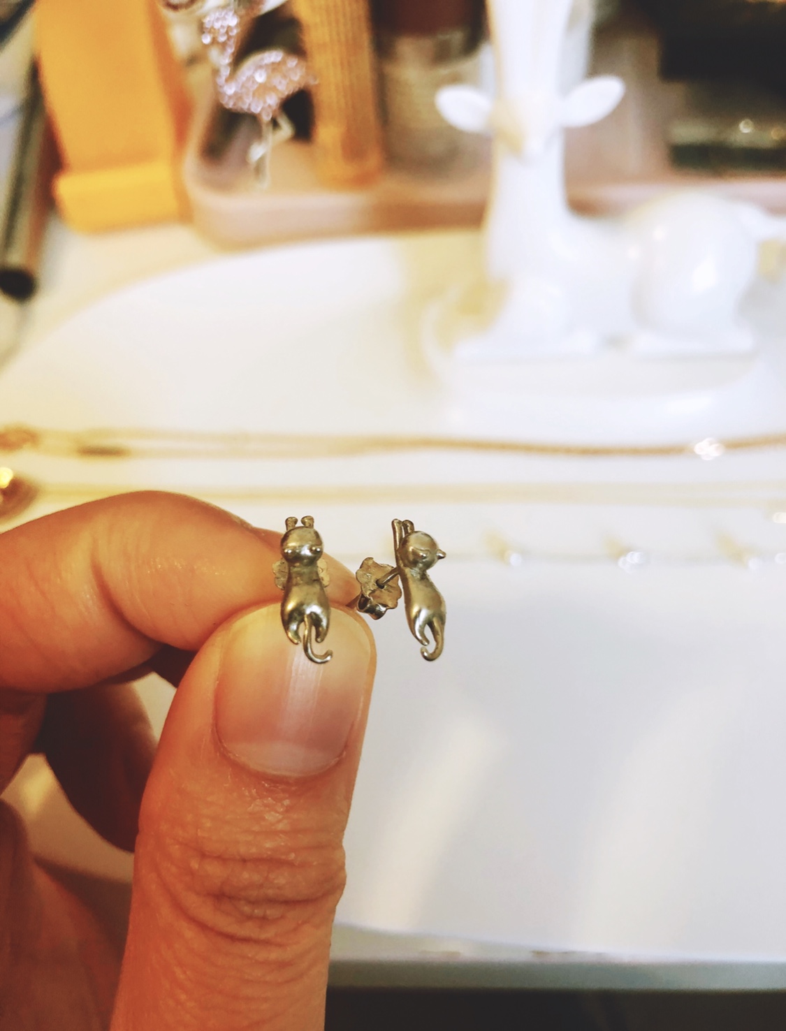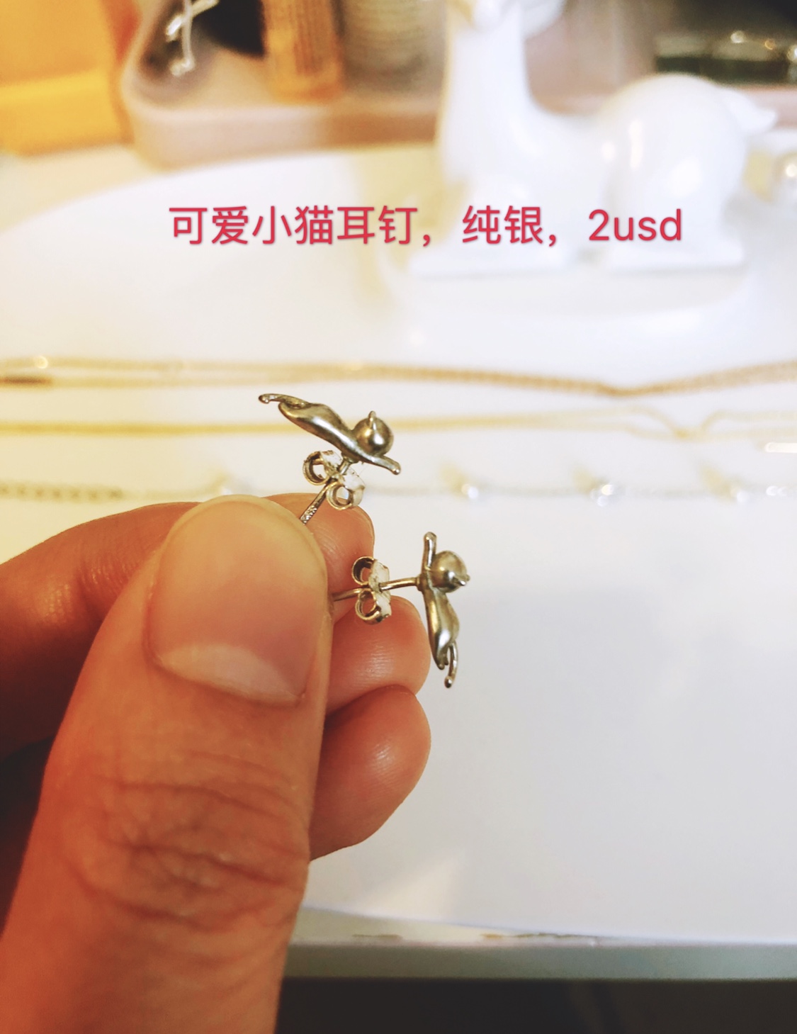 纯银小猫耳钉,2usd