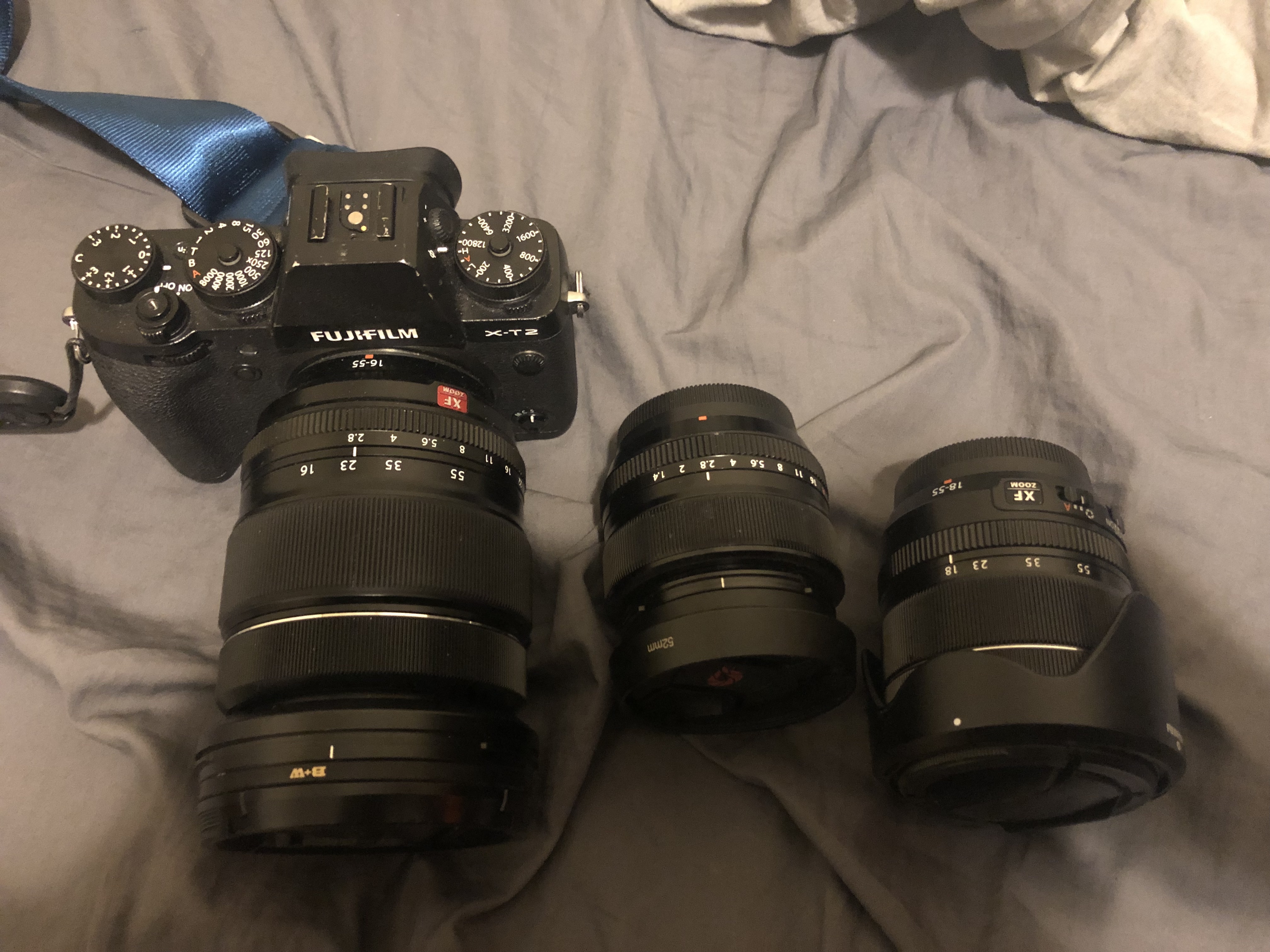 镜头分别是 XF16-55mm F2.8-22LM R WR, 35mm F1.4-16, XF 18-55mm