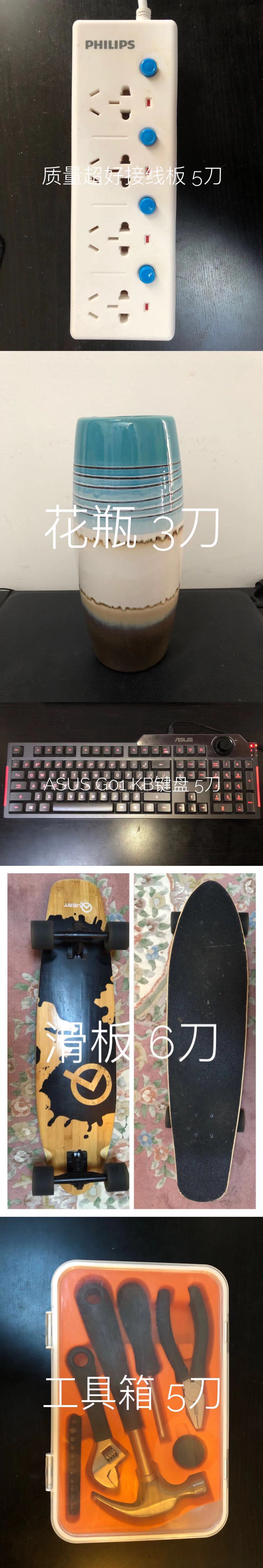 出点杂物,理发器,接线板,键盘,花瓶,工具箱,滑板