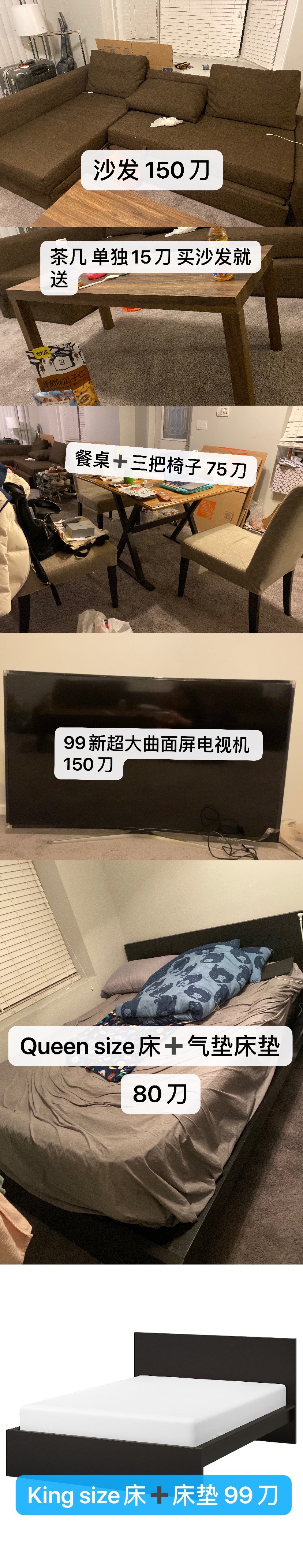 毕业卖闲置 床 沙发 电视机 冰箱等等。。。