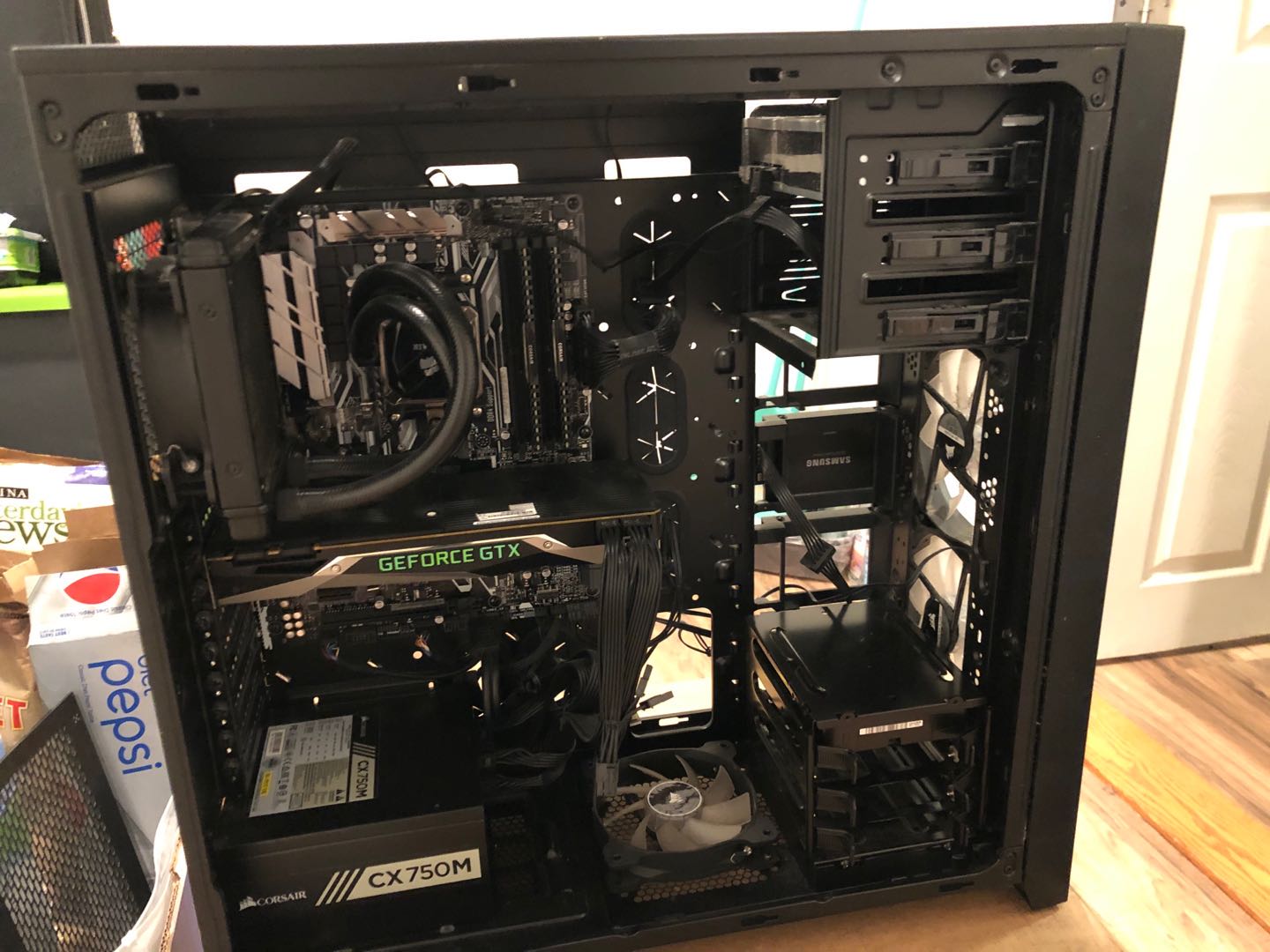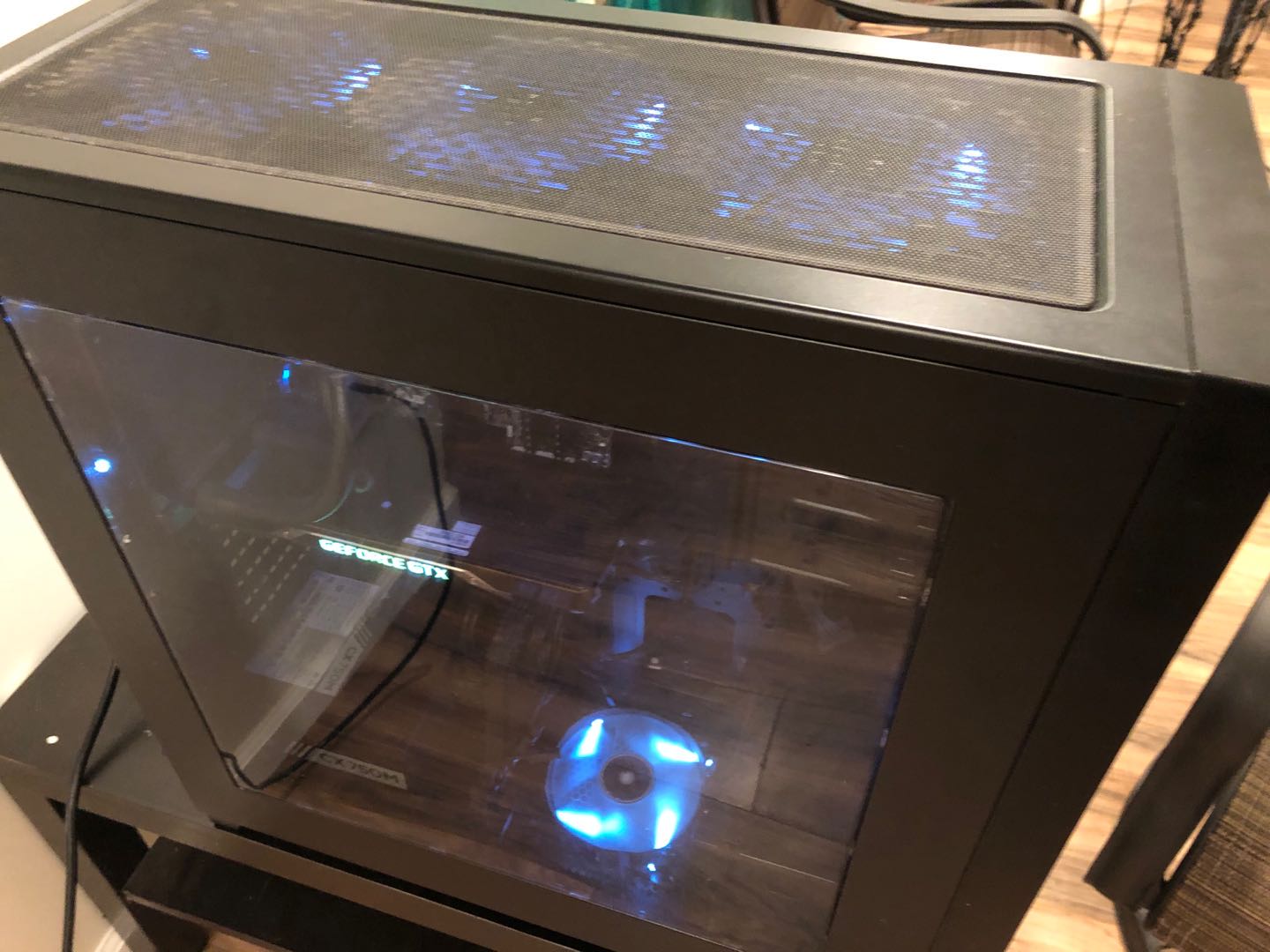 17年下半年装的自用游戏配置,当时税前2k多,自己组的用的全是好货线走的也还凑合,然而我对游戏的兴趣。。。也就那样,除了玩吃鸡,还为了方便找人开的都是中低配,没玩啥大型游戏,糟蹋这套配置了,哦巫师3试过,4K all ultra settings 70FPS以上。状态很好,没超过频,都是系统自动优化。7个风扇全是白光,机箱通透,散热巨好,涂的液态银散热。刚才简单清了下灰,你有兴趣的话可以自己重新涂一下牙膏,上次涂牙膏已经一年了。