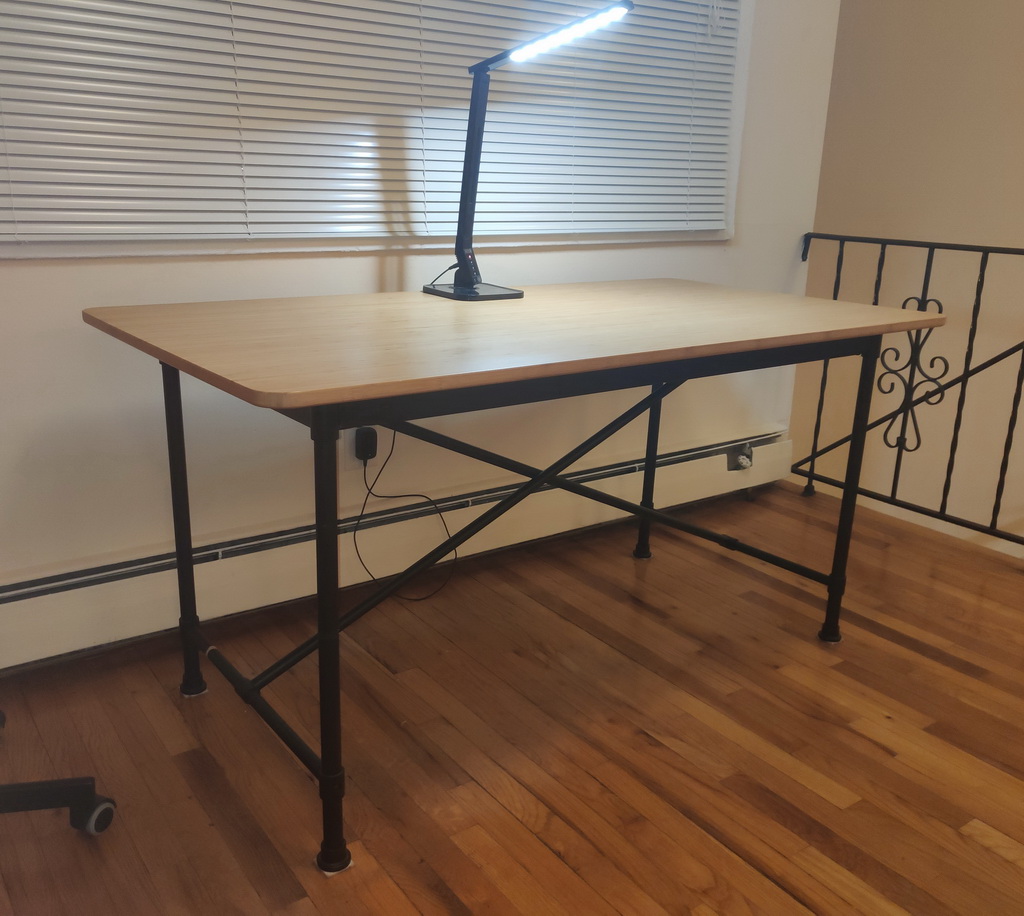 宜家餐桌,品牌:övraryd,桌面为竹质,黑色金属桌腿,