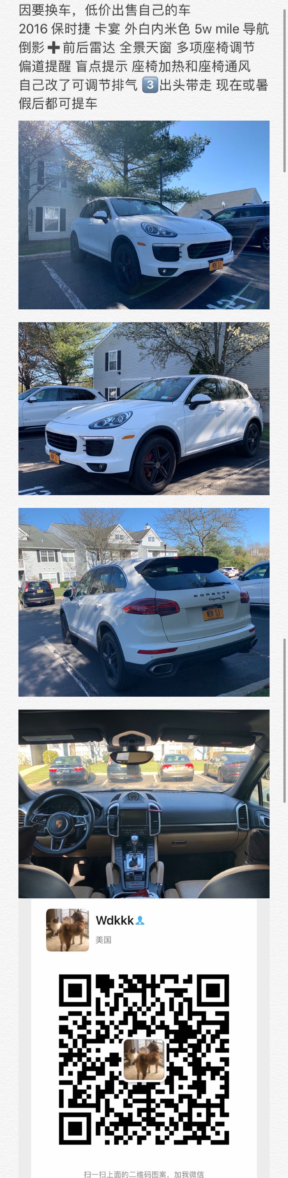 出售2016年 卡宴,有兴趣的加微信!