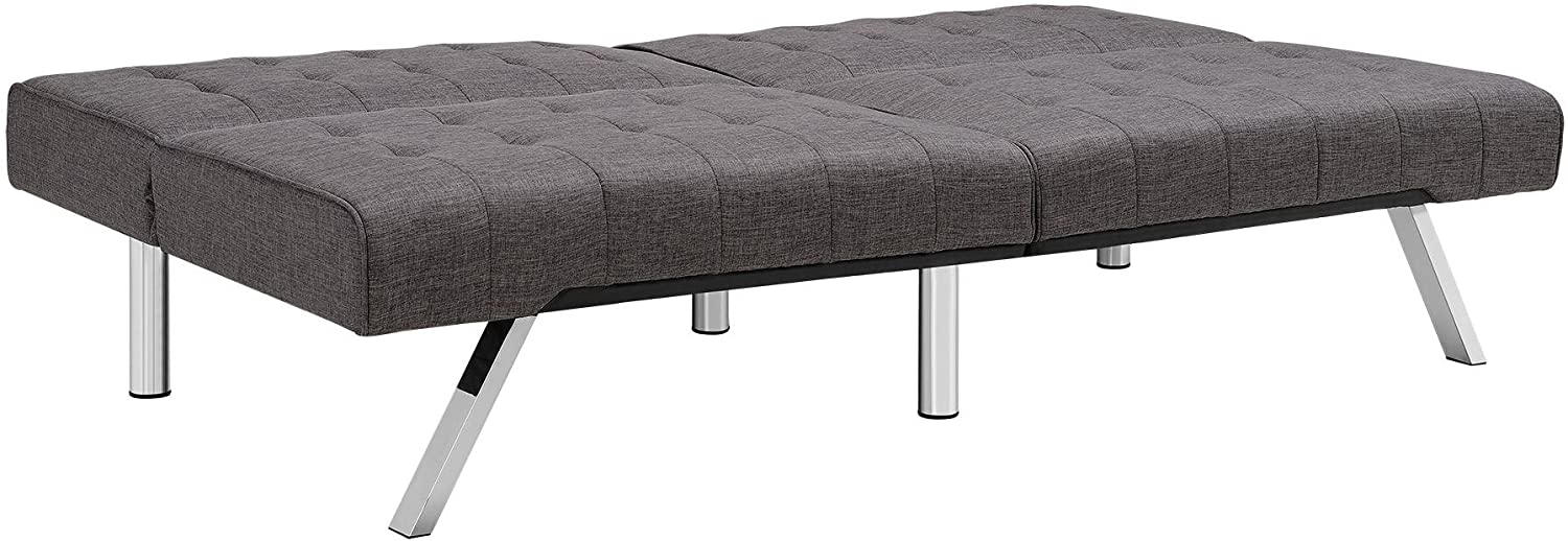 Selling gently used DHP Emily Futon Couch Bed - Gray linen. Sturdy sofa that can lay flat into a futon bed. Very easy to disassemble and reassemble. Great for guests to sleep on for a guest room. $175