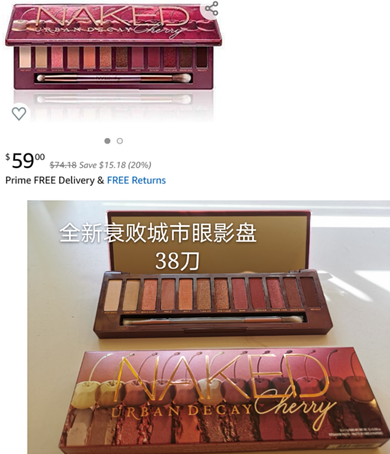 全新衰败城市眼影盘 樱桃 38刀