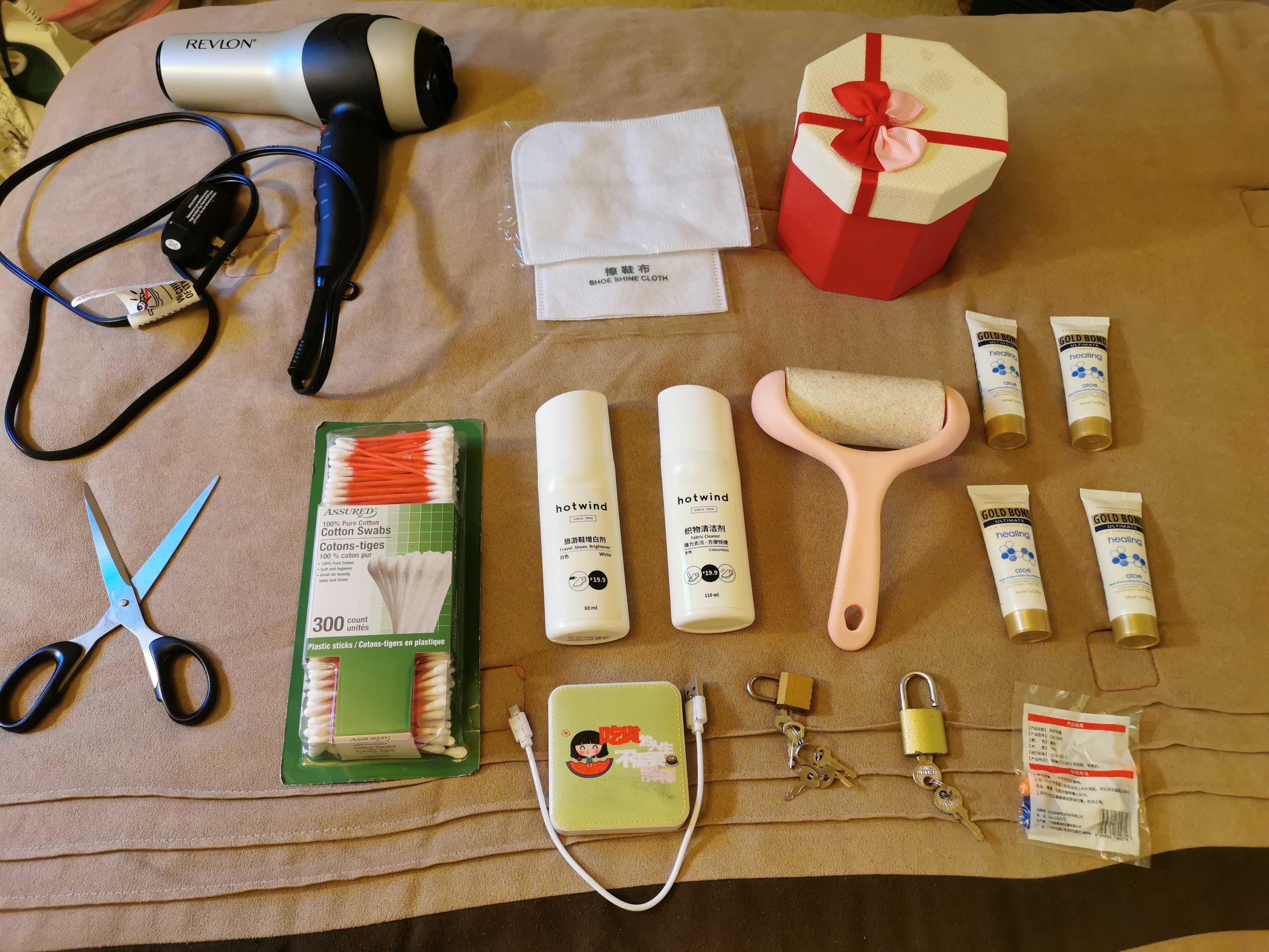 【自行车,衣架,落地灯,收纳盒,吹风机,熨斗,生发液,打火机,香薰蜡烛,镜子,纪梵希彩妆盒】