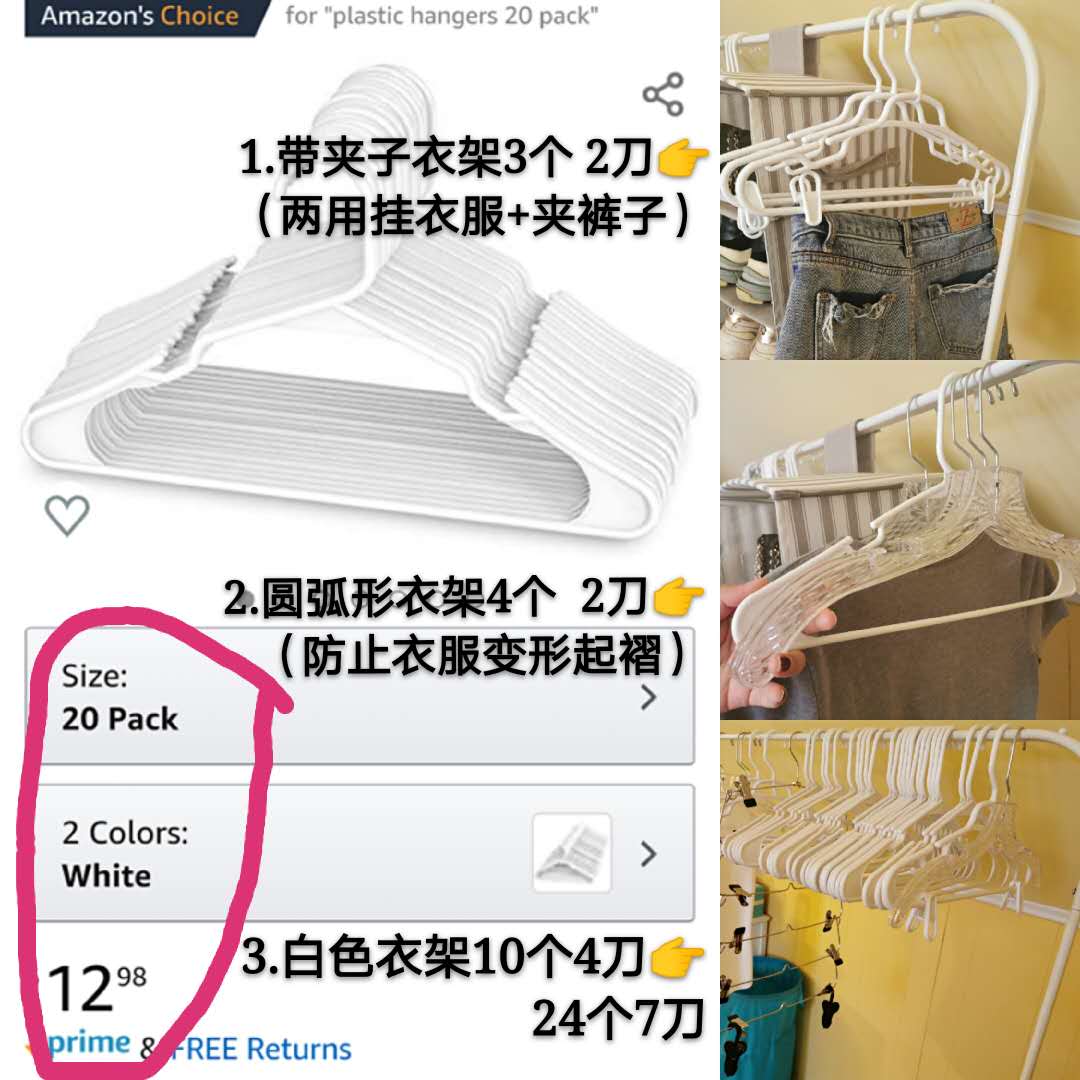 白色衣架24个7刀,10个4刀 (Amazon上20个13刀)