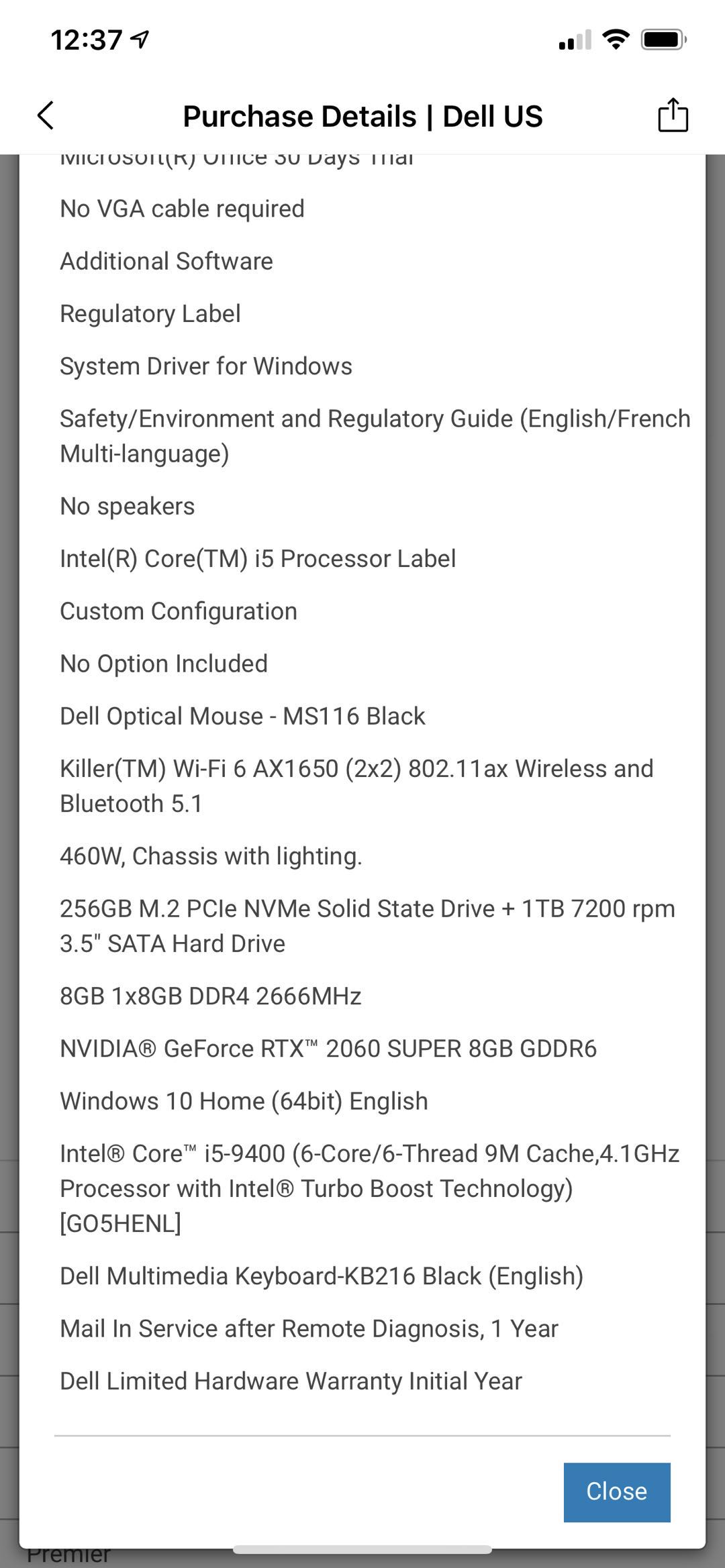 2060super显卡,i5-9400cpu,细节配置如图: