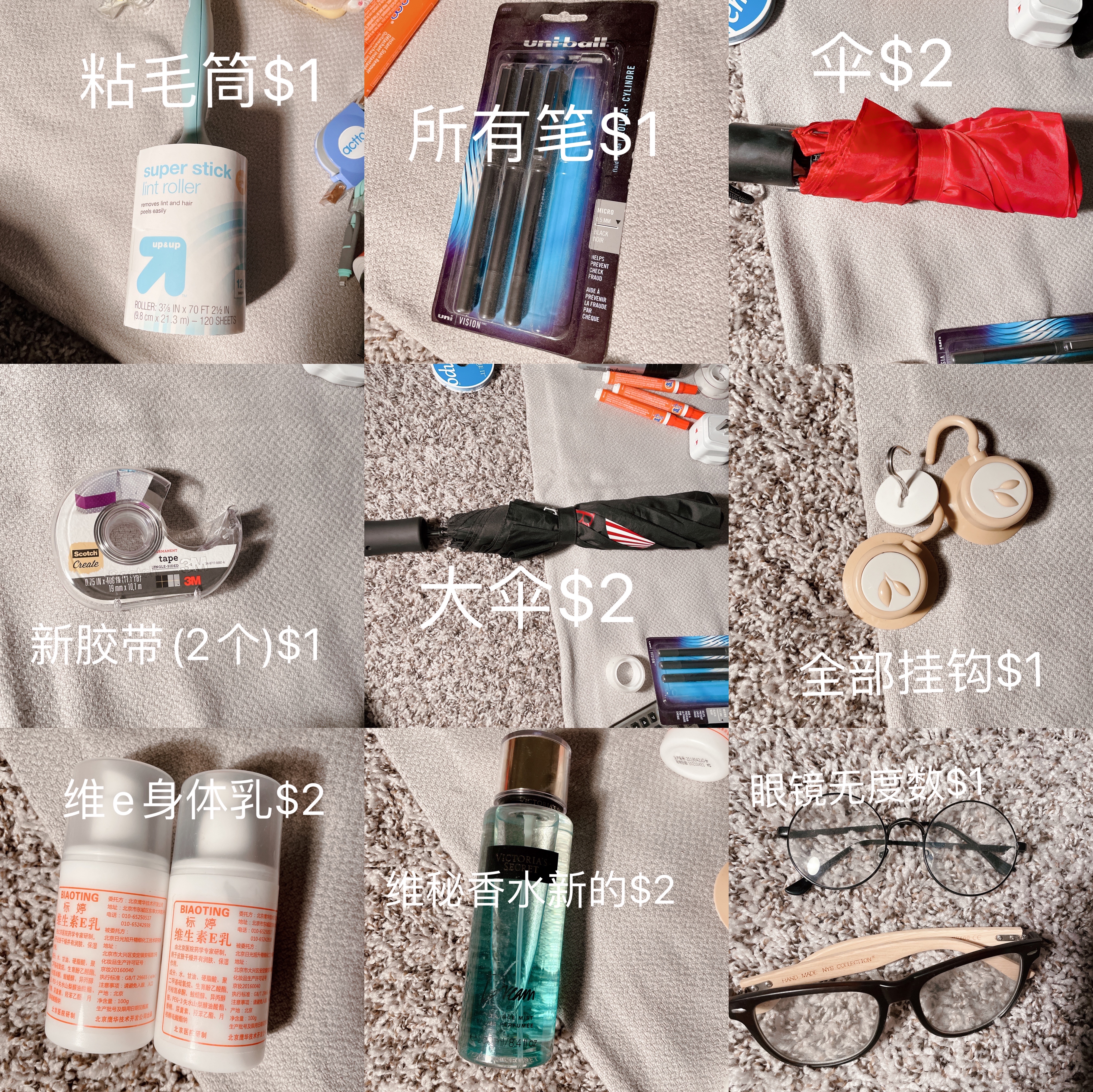 出小物件,收纳,文具,香水,手机壳,身体乳,小电器,收纳,伞,全部$2一下