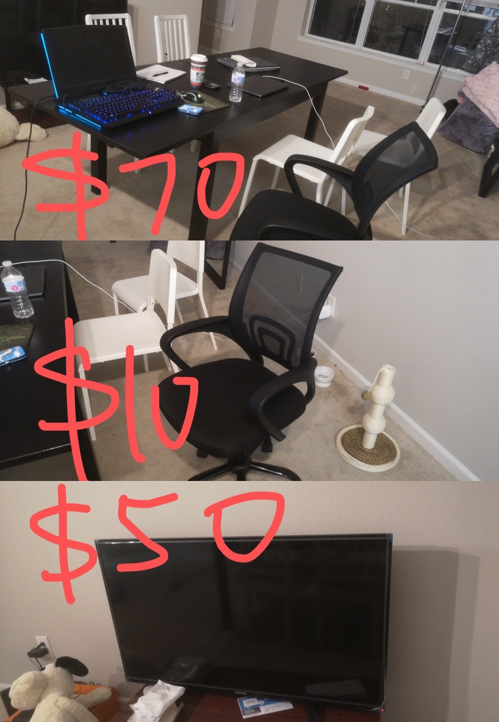 图一桌子和四个椅子一共70刀(桌子可以变短)