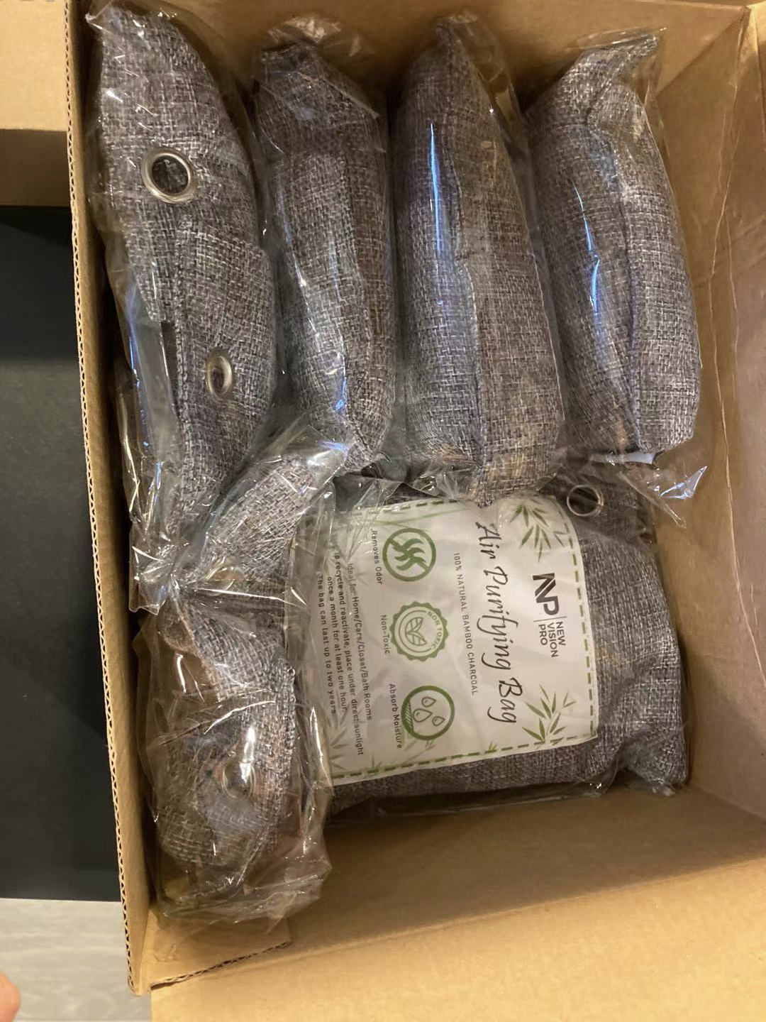 竹炭空气净化袋-天然竹炭(儿童和宠物)-家用,汽车,壁橱和地下室的强力除臭剂和水分吸收剂(6x200g,4x75g,6XS挂钩)全新