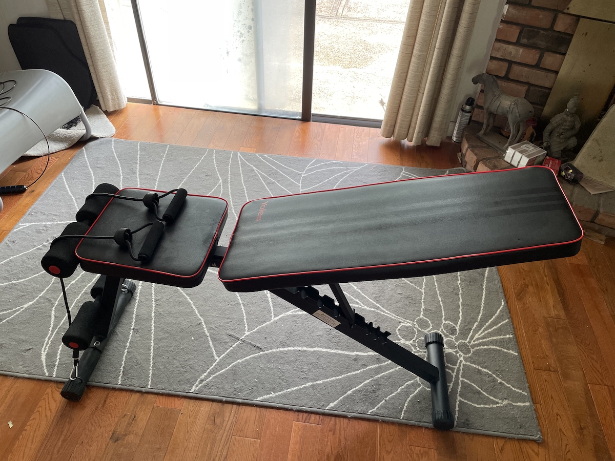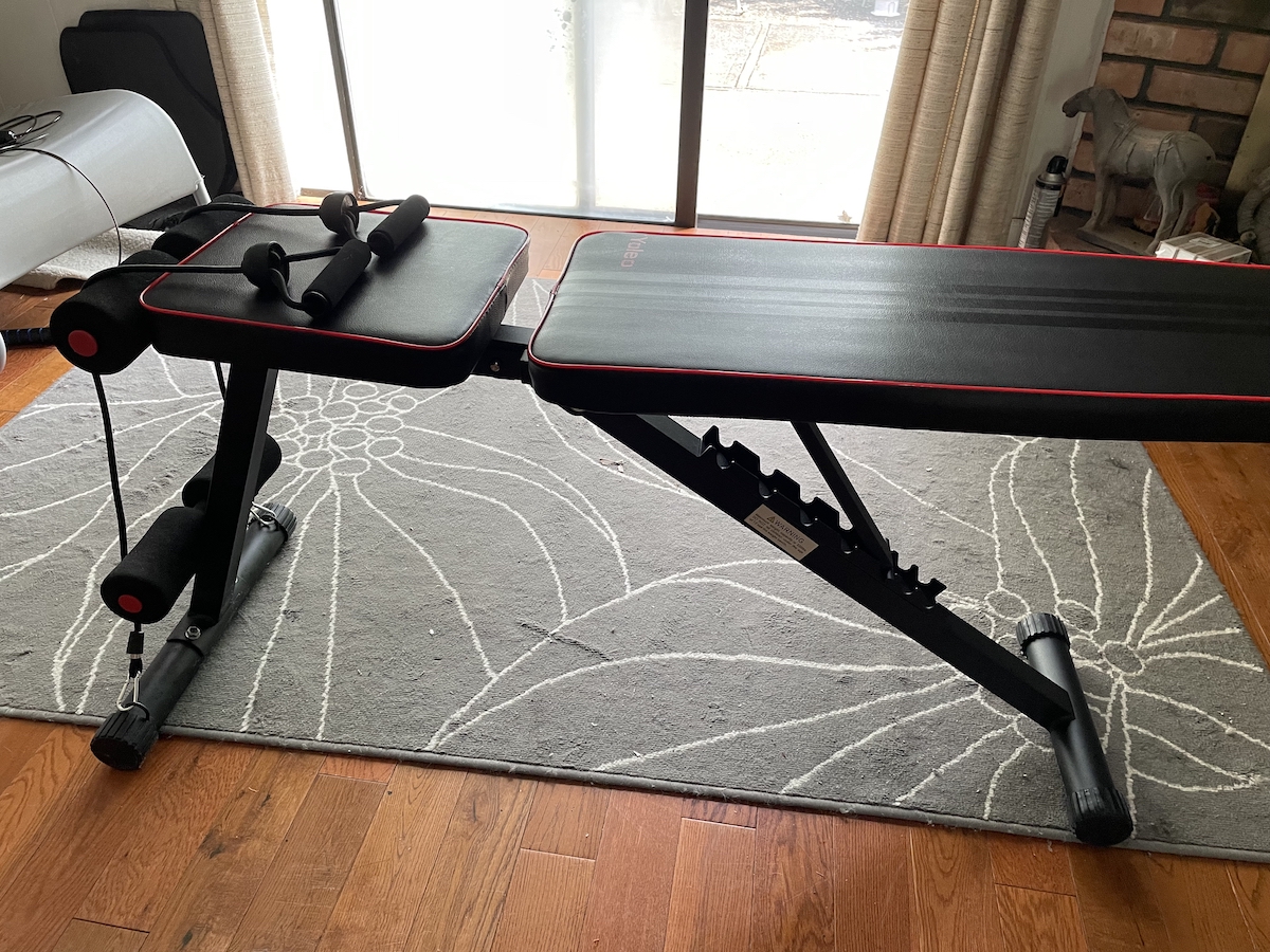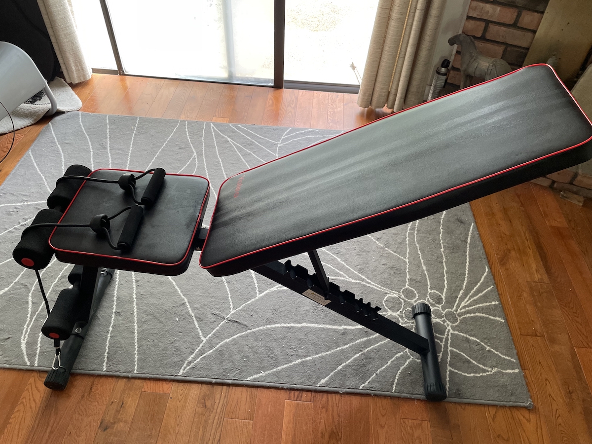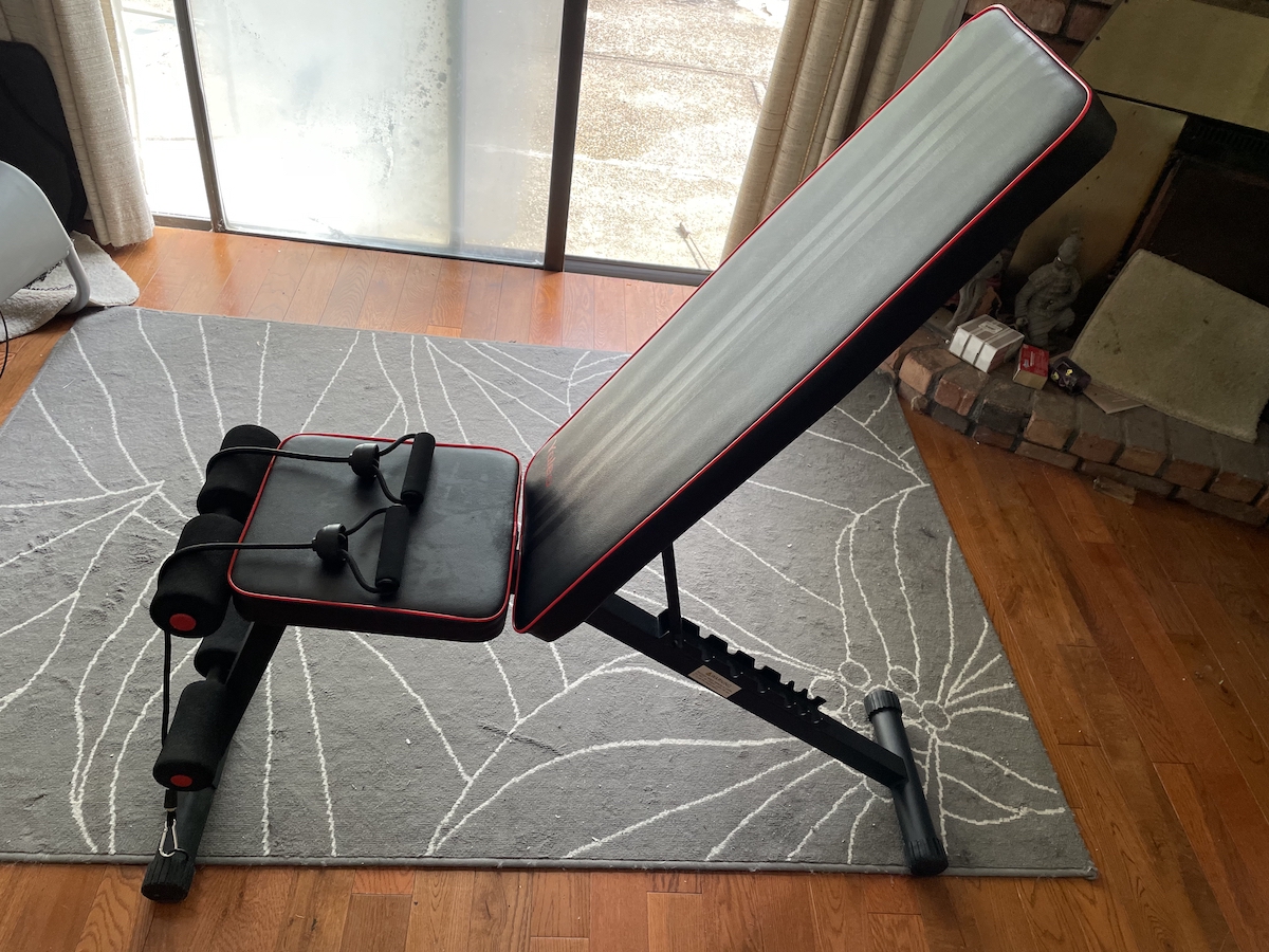 [已卖出]【可调节健身椅子】:非常结实耐用,8档调节高度,可作仰卧起坐、举杠铃增肌塑身两不误!接近新买的(95成新),仅卖 $49, 欲购从速!