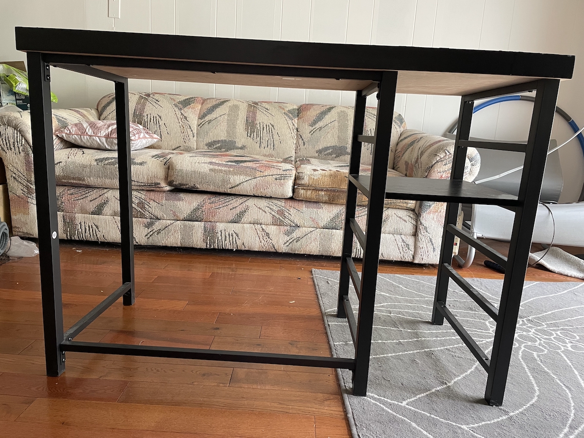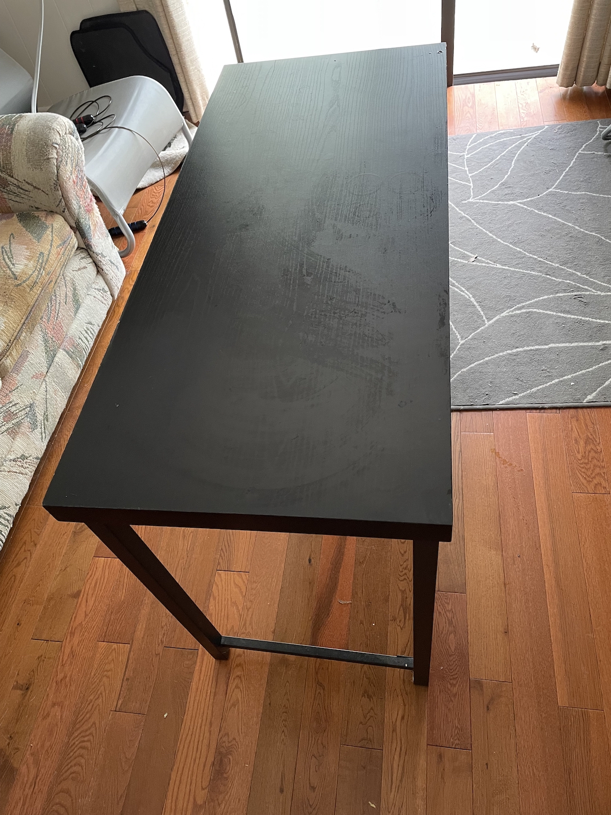 【纯黑色办公书桌】:非常轻便优雅,超级结实,放一台电脑加两台27寸显示器毫无压力,不晃动,拆卸可装车上运走非常简单。