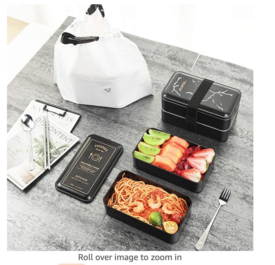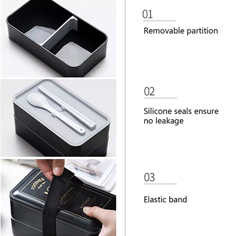日式便当盒午餐盒、2 层可叠放防漏绝缘容器、带礼物的日式食品收纳盒(FOODIES 图案)