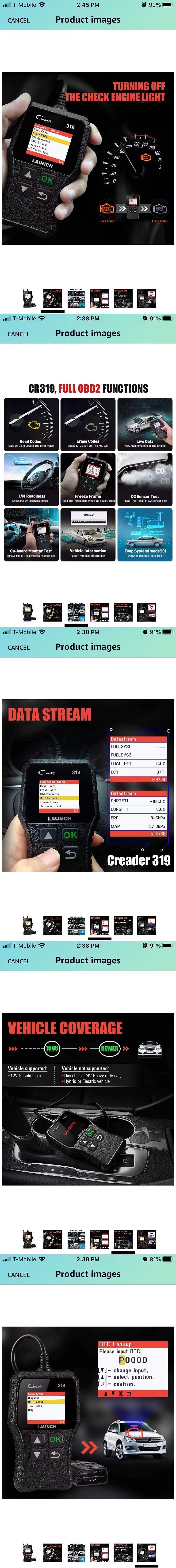 买车必备 扫描仪 CR319 检查发动机代码阅读器,具有完整的 OBD2 功能,汽车发动机故障代码阅读器 CAN 扫描工具,支持 Mode6 O2 传感器和带有 DTC 查找的 EVAP 系统