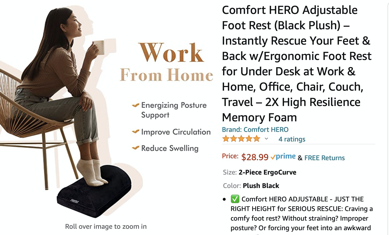 2. Comfort Adjustable Foot Rest (Black Plush) – Instantly Rescue Your Feet & Back w/Ergonomic Foot Rest for Under Desk at Work & Home, Office, Chair, Couch, Travel – 2X High Resilience Memory Foam (全新 未拆封)