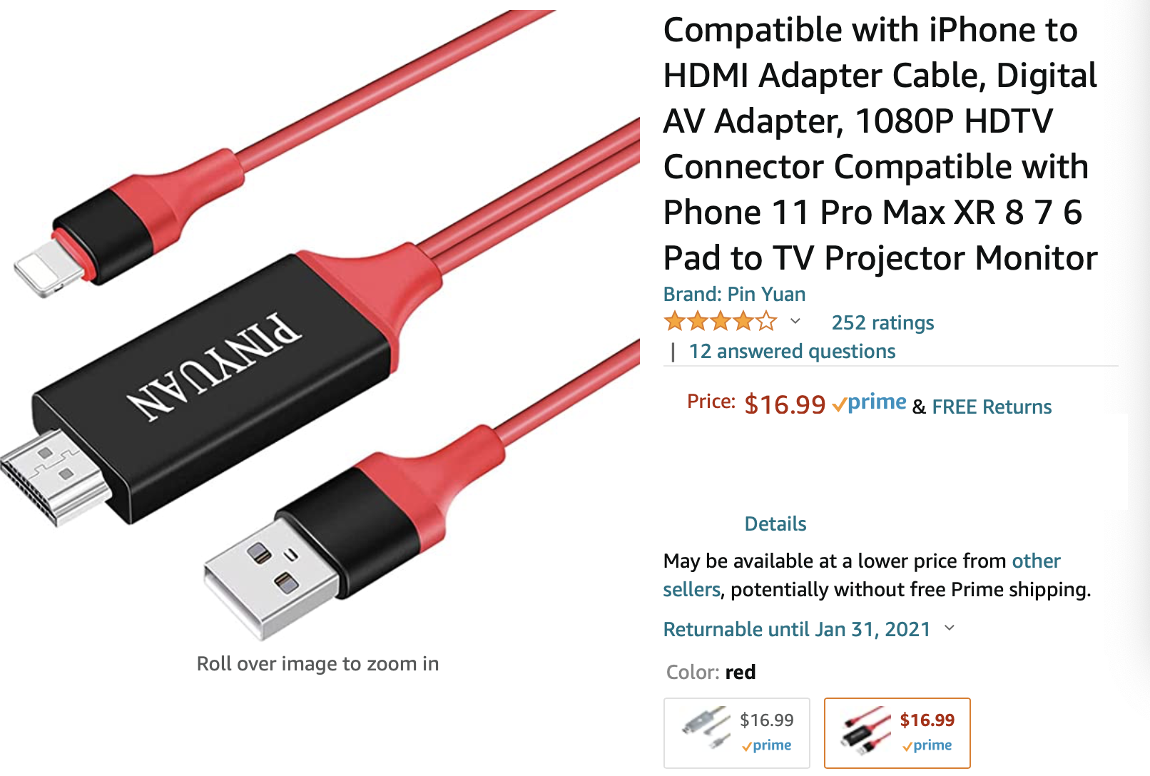 5. Compatible with iPhone to HDMI Adapter Cable, Digital AV Adapter, 1080P HDTV Connector Compatible with Phone 11 Pro Max XR 8 7 6 Pad to TV Projector Monitor全新手机投屏线 原价:16.99 + tax 现价:$10