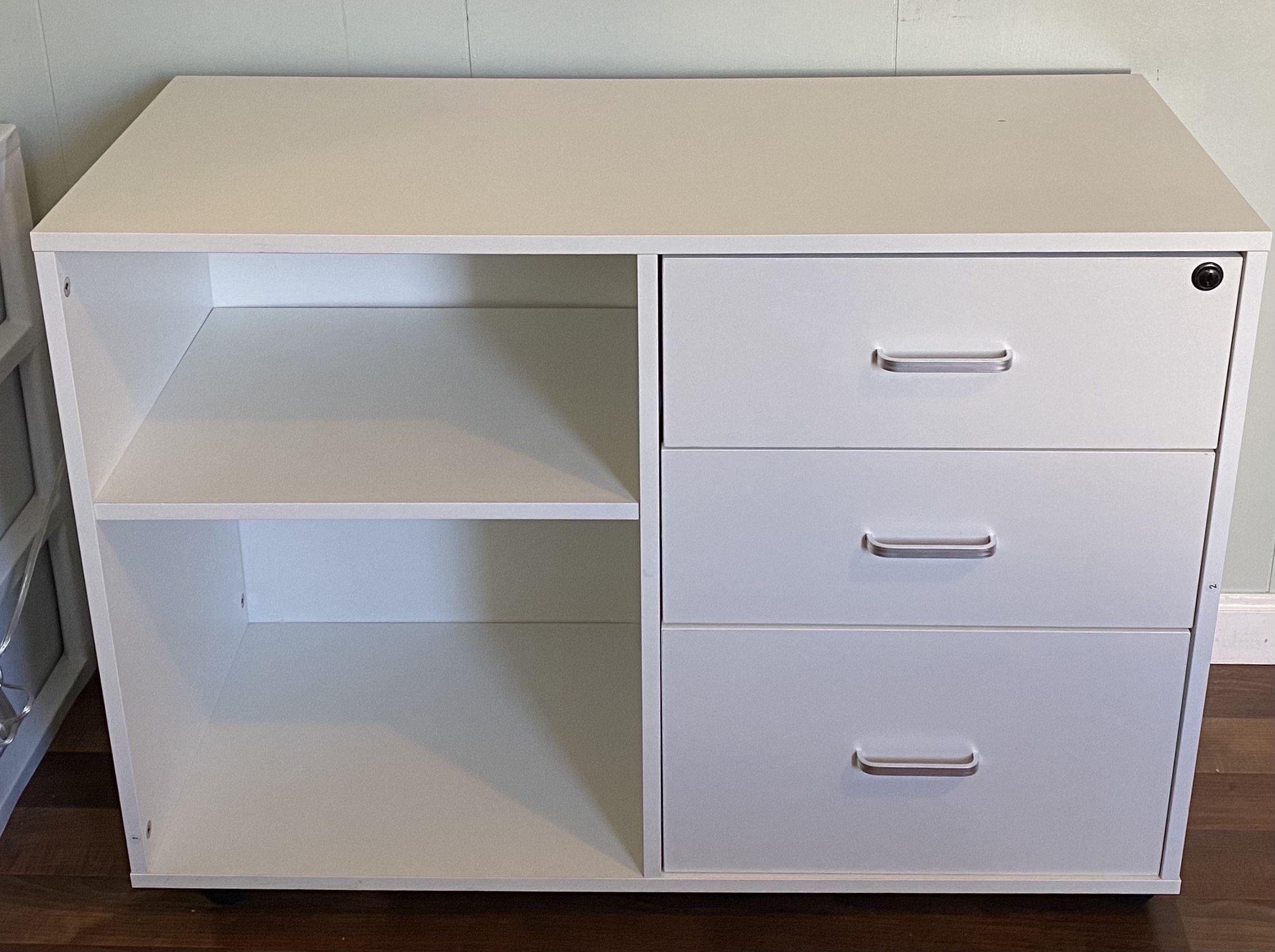 桌子的表面有一个0.5cm的磕痕,侧面有一个1cm的磕痕,其他地方没有磨损
