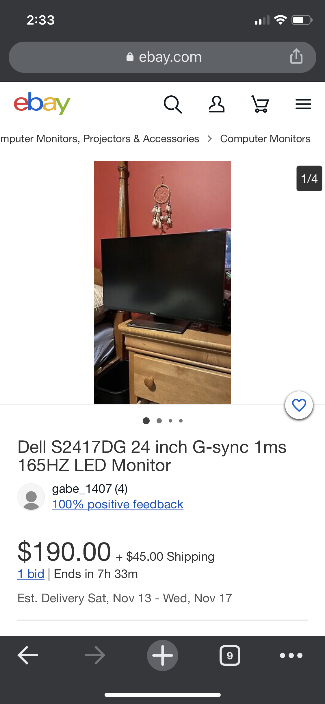 Dell 24寸 2K分辨率 165HZ G-Sync显示器