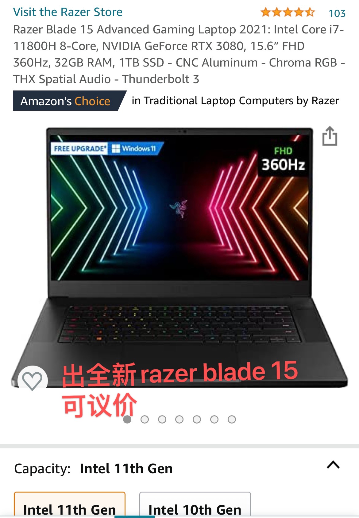 出全新未拆封电脑 价格低于原价 可议价 razer blade 15