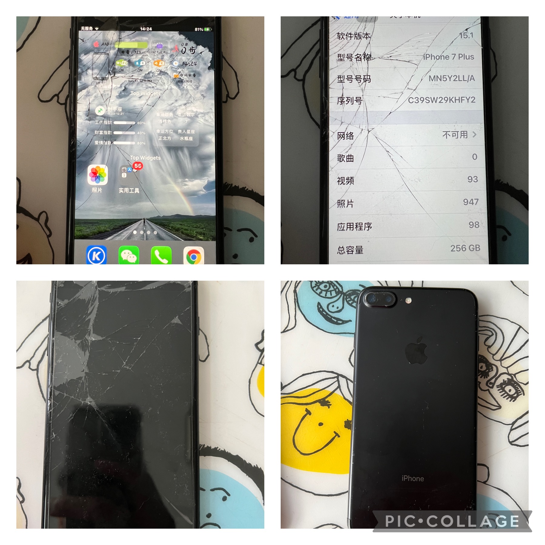iPhone 7plus 256G $100 屏幕需要更换,但不影响使用。联系方式:短信6314130423