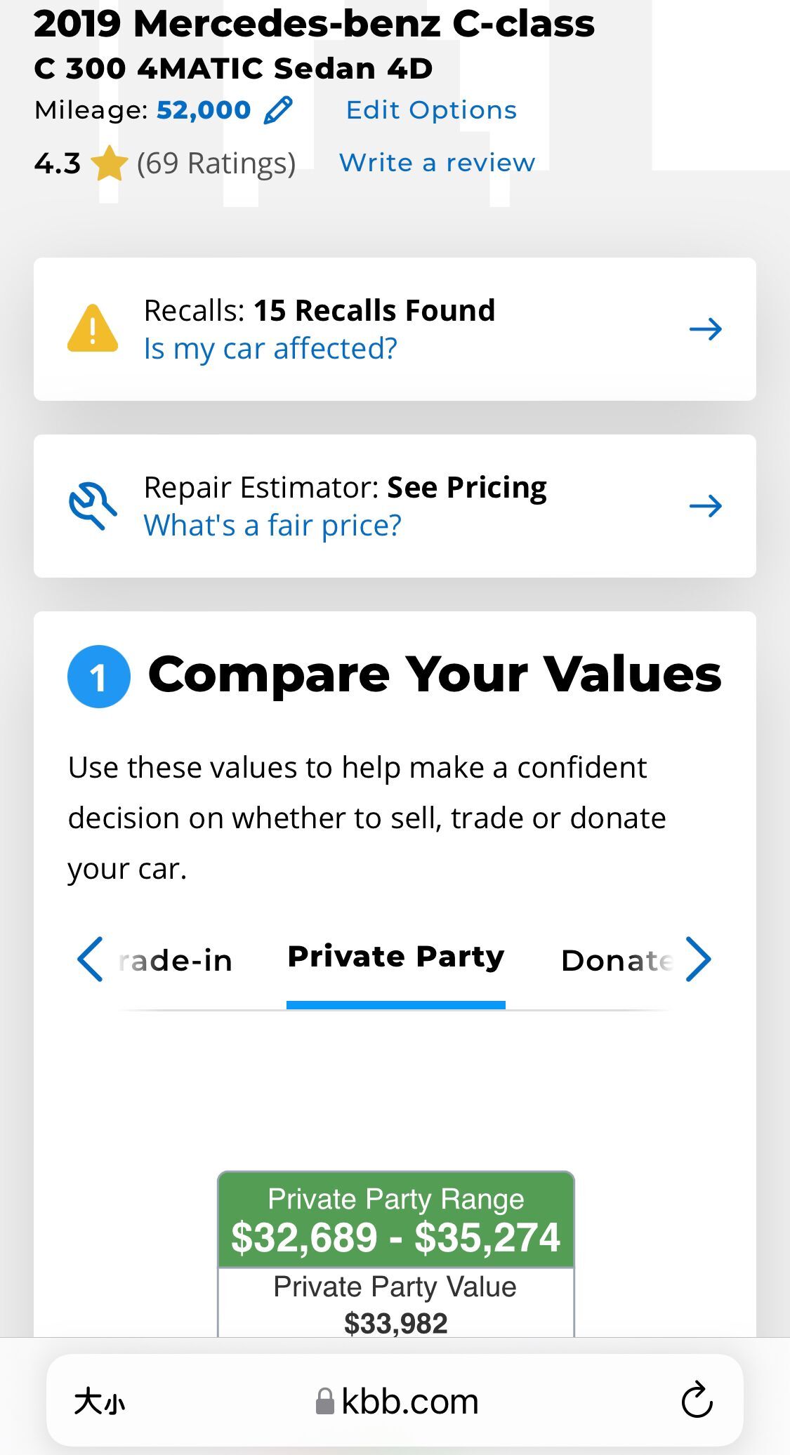 价格低于KBB报价中位33900,现在低价:32500美元出售