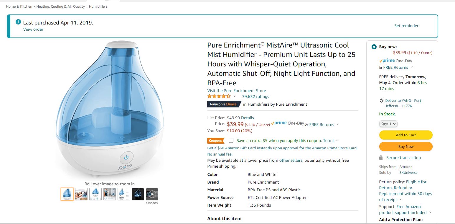 长岛居家必备加湿器,10刀出售,联系 6312028549
