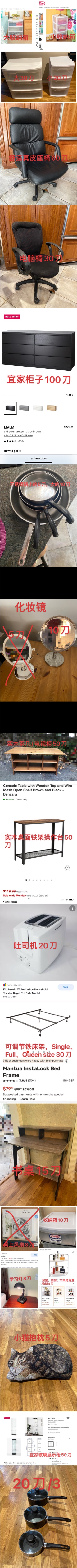 九成新宜家家具,电脑椅,Sterilite收纳箱,简易结实铁床架,学习灯,书桌,九成新实木茶几/电视柜,控制台,吐司机,碗碟套装,不锈钢平底锅,不粘锅等等,不断更新中!有意者加微信:QQ478131138或扫码加Harriet 发布于 2022-09-30T02:34:19Z