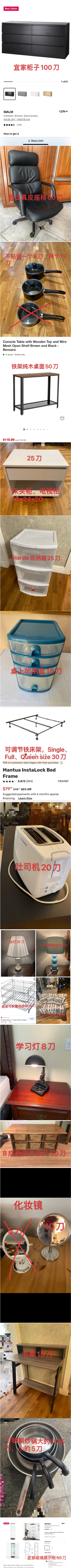 九成新宜家家具,电脑椅,Sterilite收纳箱,简易结实铁床架,学习灯,书桌,九成新实木茶几/电视柜,床头柜,控制台,吐司机,碗碟套装,不锈钢平底锅,不粘锅等等,不断更新中!有意者加微信:QQ478131138或扫码加