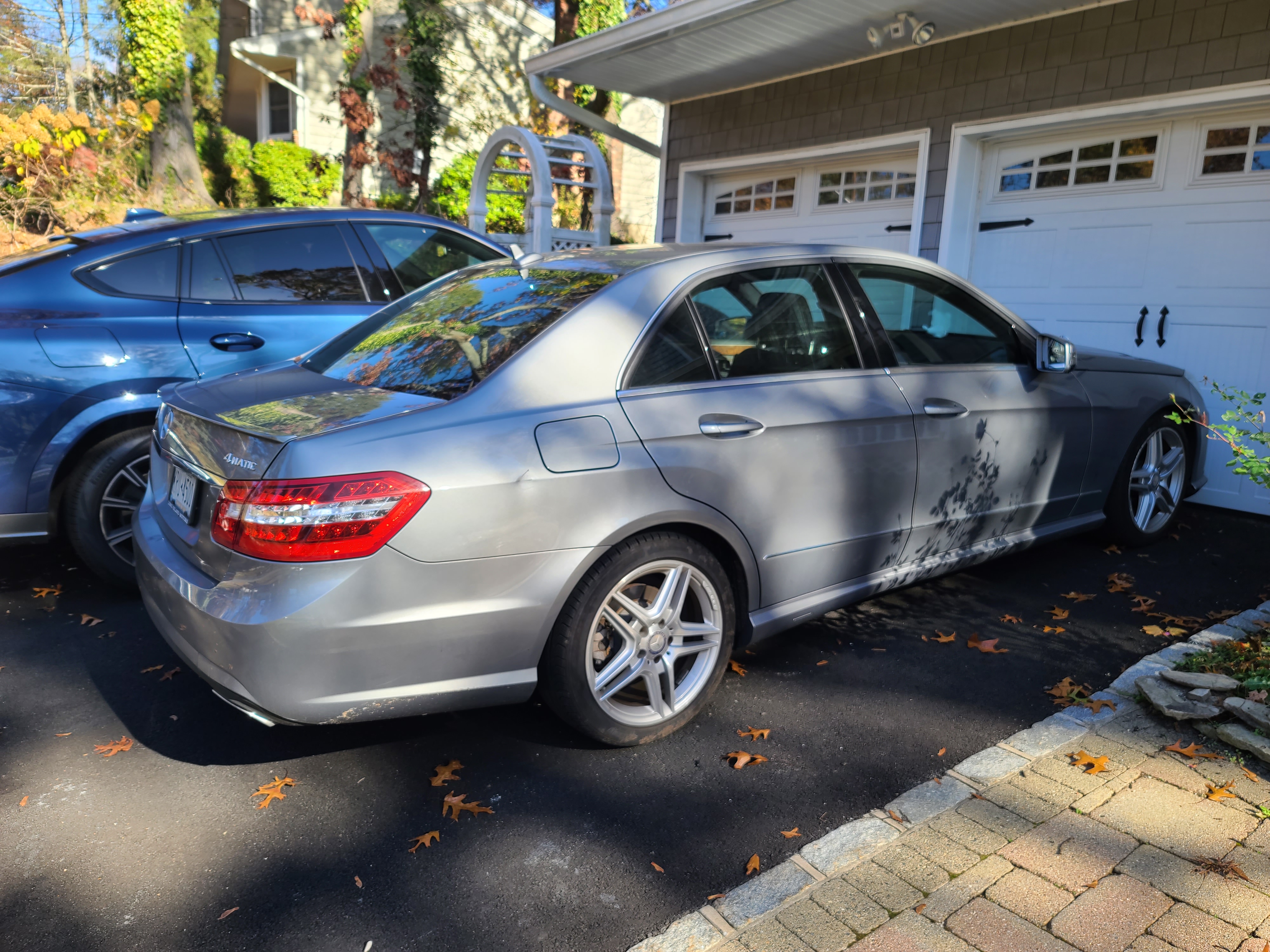 如图 石溪上下学自用2013年奔驰E350四驱版 3.5升V6 目前不到60000miles。空间很大,配置够用,有AMG运动套件 倒车影像 前排座椅加热 Harman Kardon音响 后遮阳帘 定速巡航等。油耗大概20-30mpg。车况非常好,除了车上有轻微划痕和磕碰痕迹之外,该做的检查和保养都已做好,无漏油等德国车常见通病 没有任何需要修的东西到手即开。
