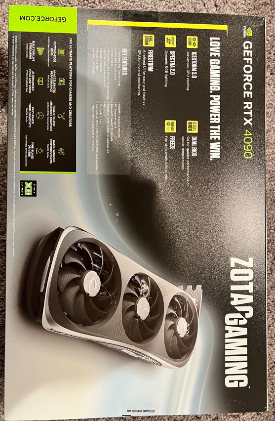 Amazon同款ZOTAC Gaming GeForce RTX 4090 Trinity OC 24GB GDDR6X 384-bit 21 Gbps PCIE 4.0 Gaming Graphics Card, IceStorm 3.0 Advanced Cooling, Spectra 2.0 RGB Lighting, ZT-D40900J-10P