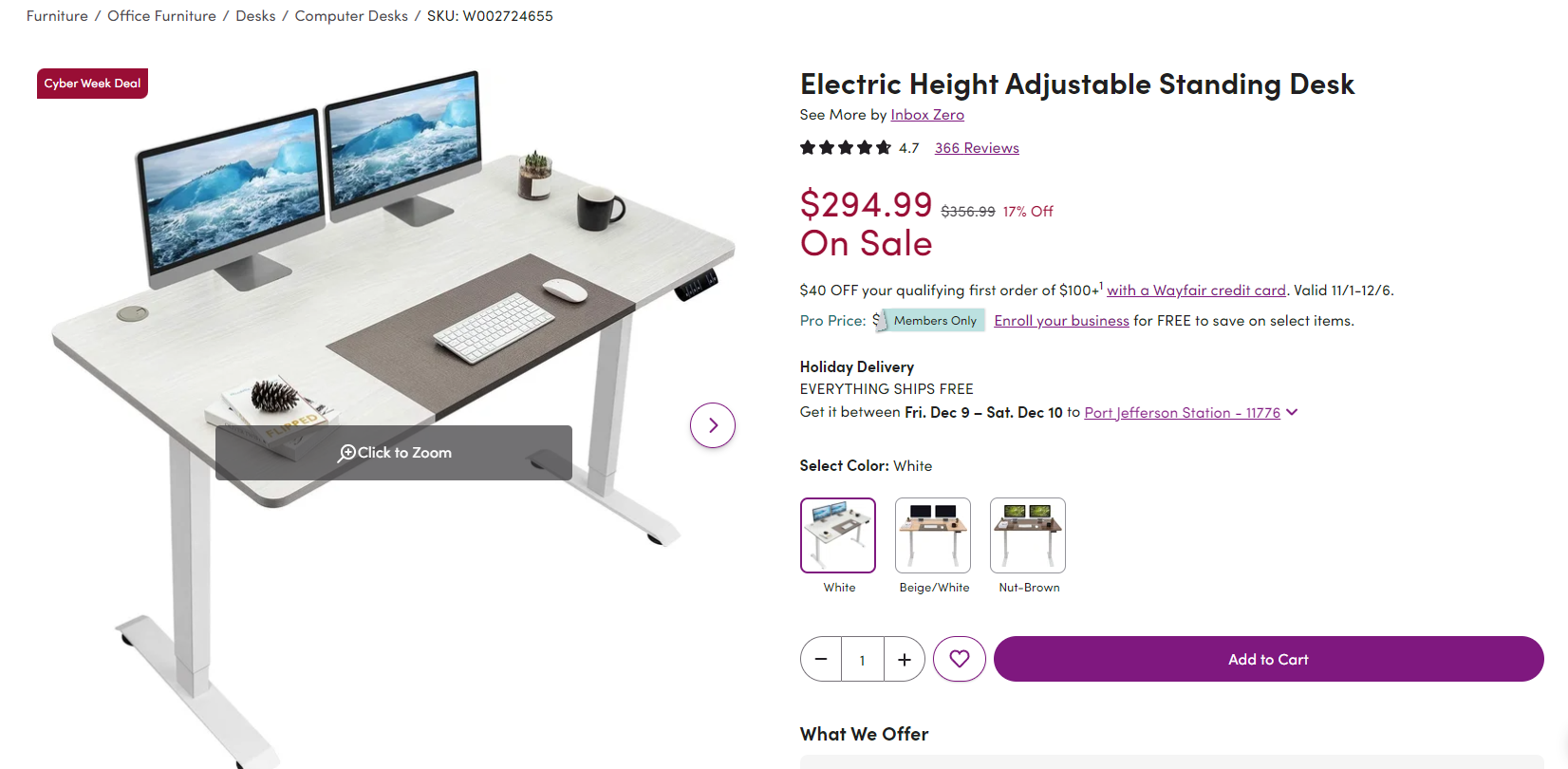 4. 电动升降桌 ----- $150