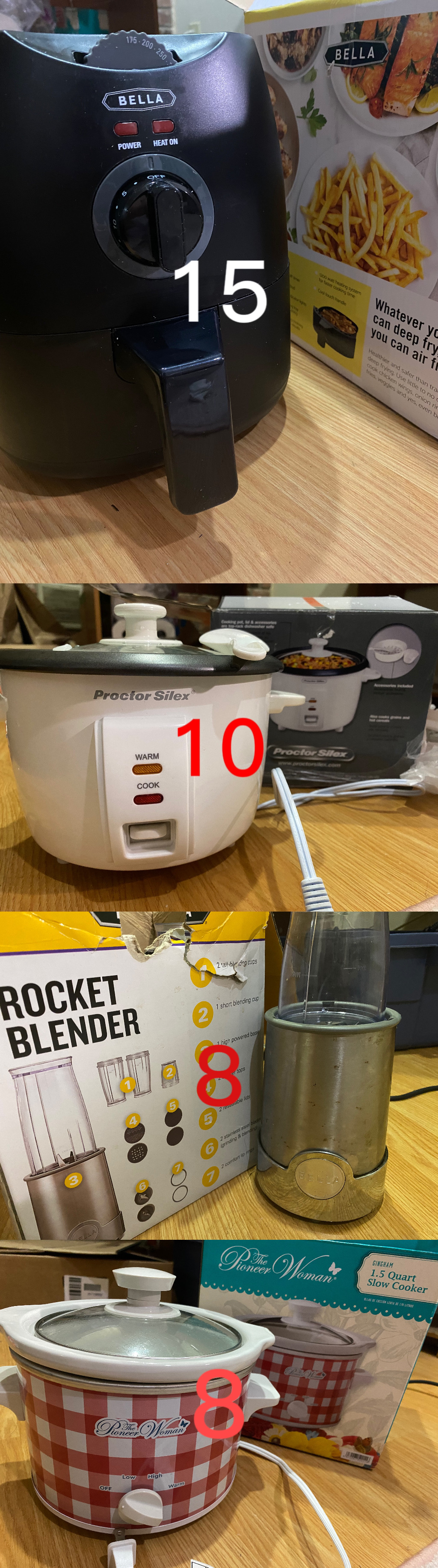 优惠出一些小家电,咖啡机,榨汁机,空气炸锅,电饭煲,慢炖锅