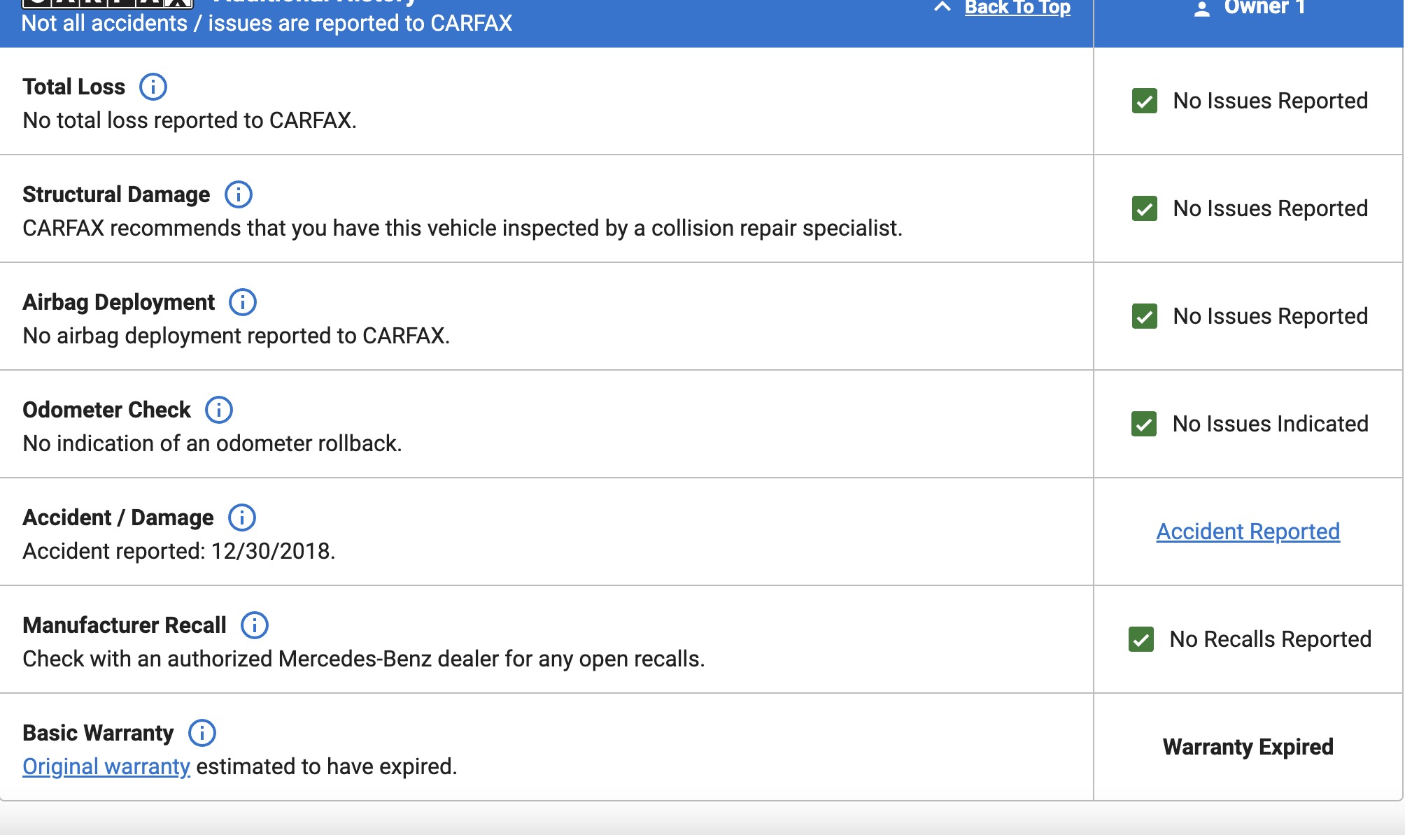以下为carfax 截图: