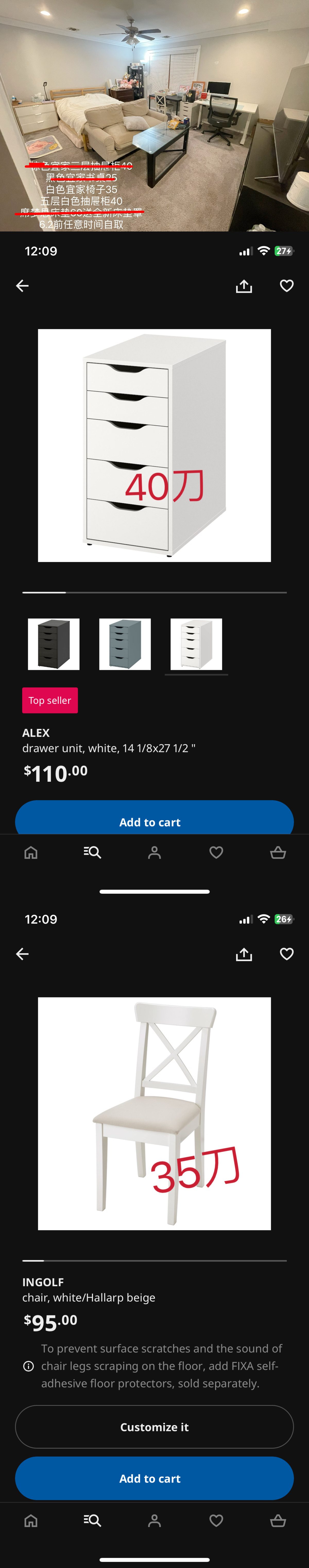还有白色椅子35刀和白色抽屉柜40刀(不刀)