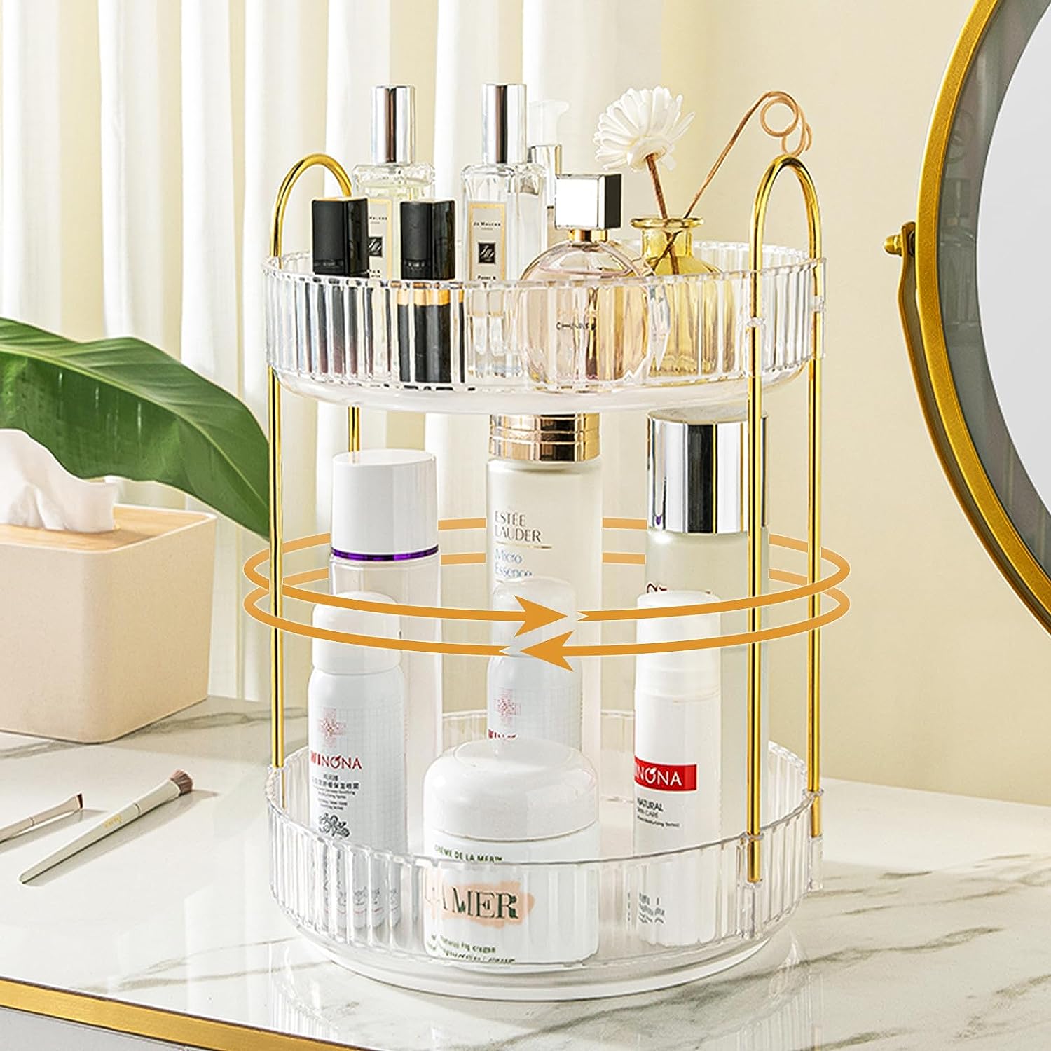 TRIWIND 360 Rotating Makeup Organizer Skincare Organizers Vanity, Spinning Perfume Organizer for Dresser Holder Lazy Susan Bathroom Organizer Countertop Make up Organizers and Storage (2Tiers, Clear)