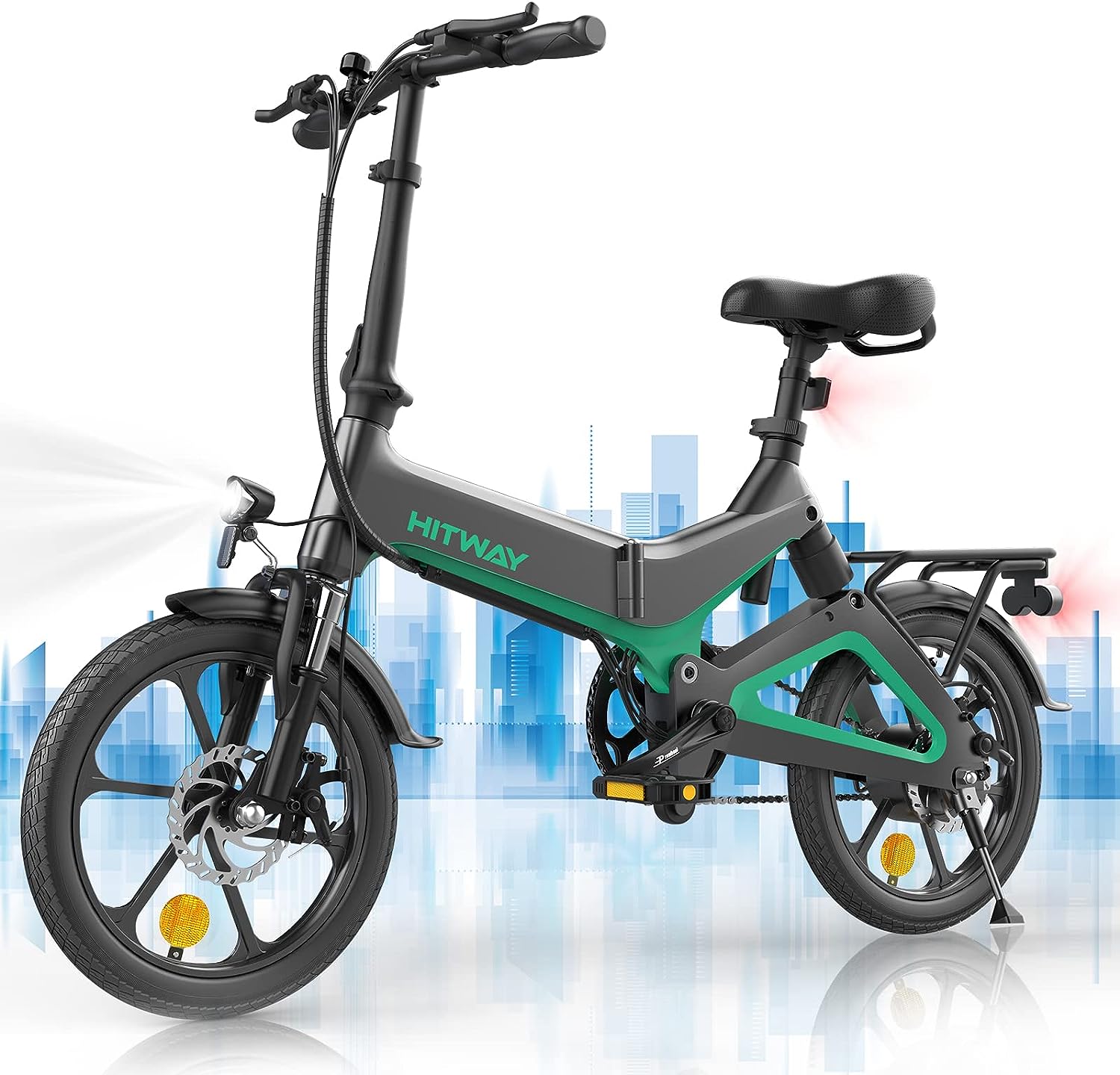 HITWAY Electric Bike for Adults,500W/36V/8.4Ah Ebike with Removable Battery,16 Inch Folding Electric Bicycles,15.5MPH/35-70KM,3 Riding Modes,IP54