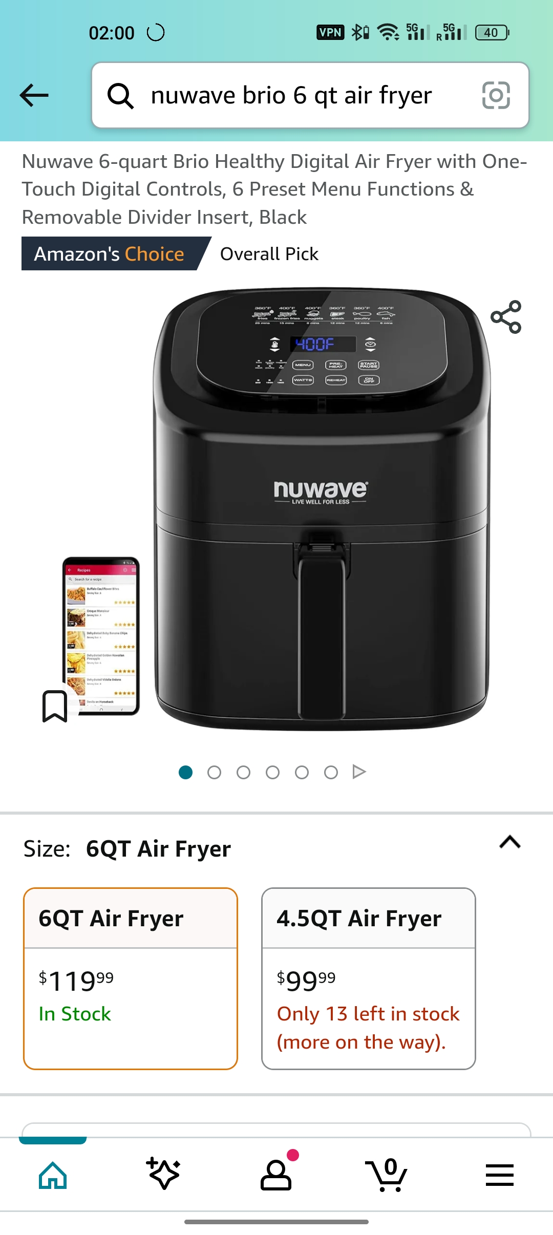 空气炸锅 numwave brio 6Qt 原价120刀,现在只要 47刀