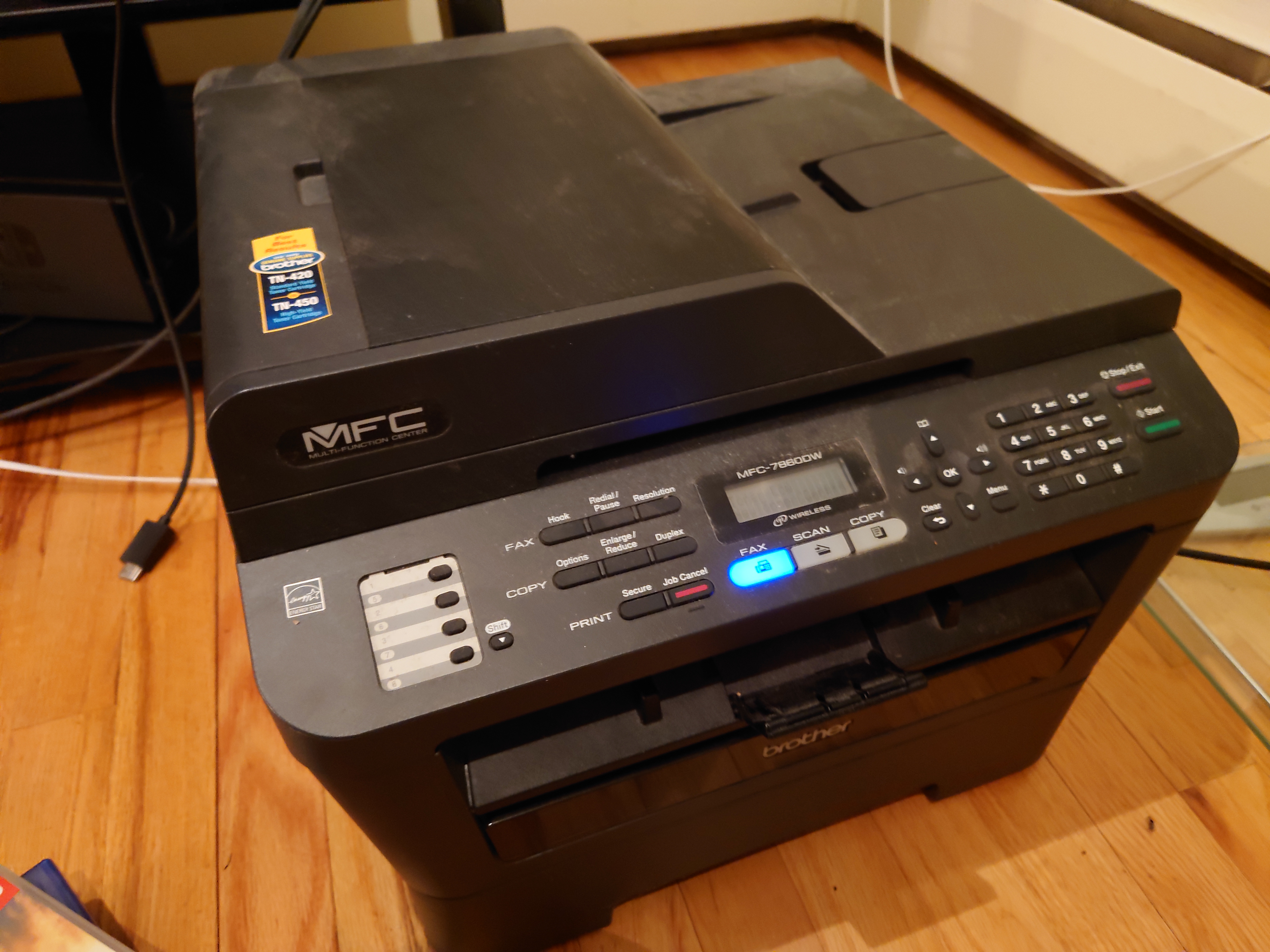 9. Brother MFC 7860dw printer 60 单色激光打印机,因为不是inkjet所以toner超耐用,