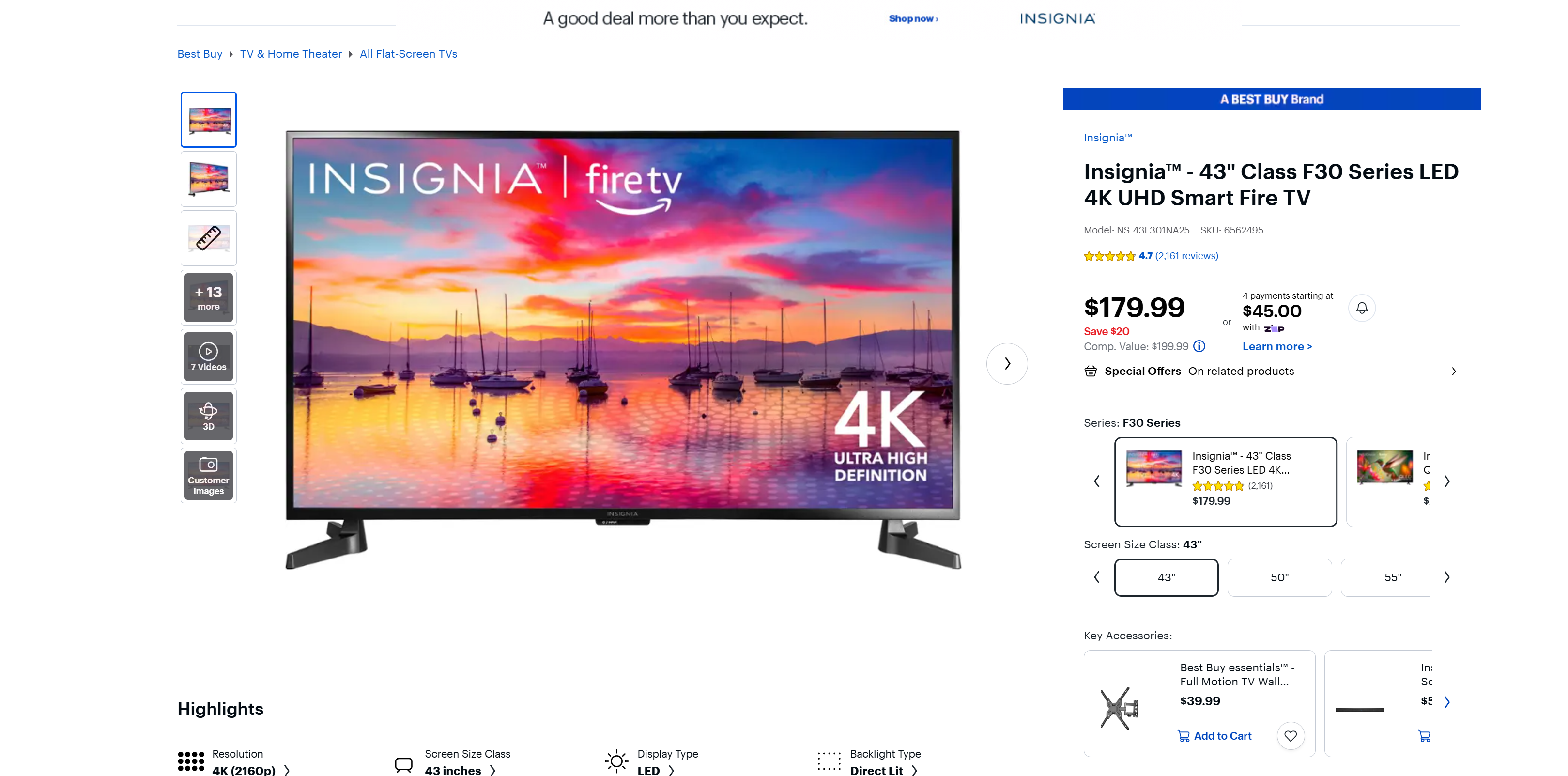 1. Insignia 43'' 4k Fire TV 买了半年,没用过几次,品相完好,160$购入 90$售