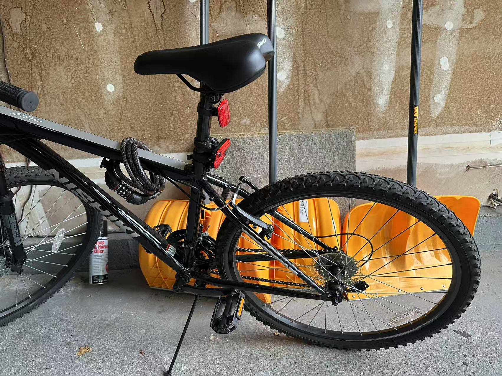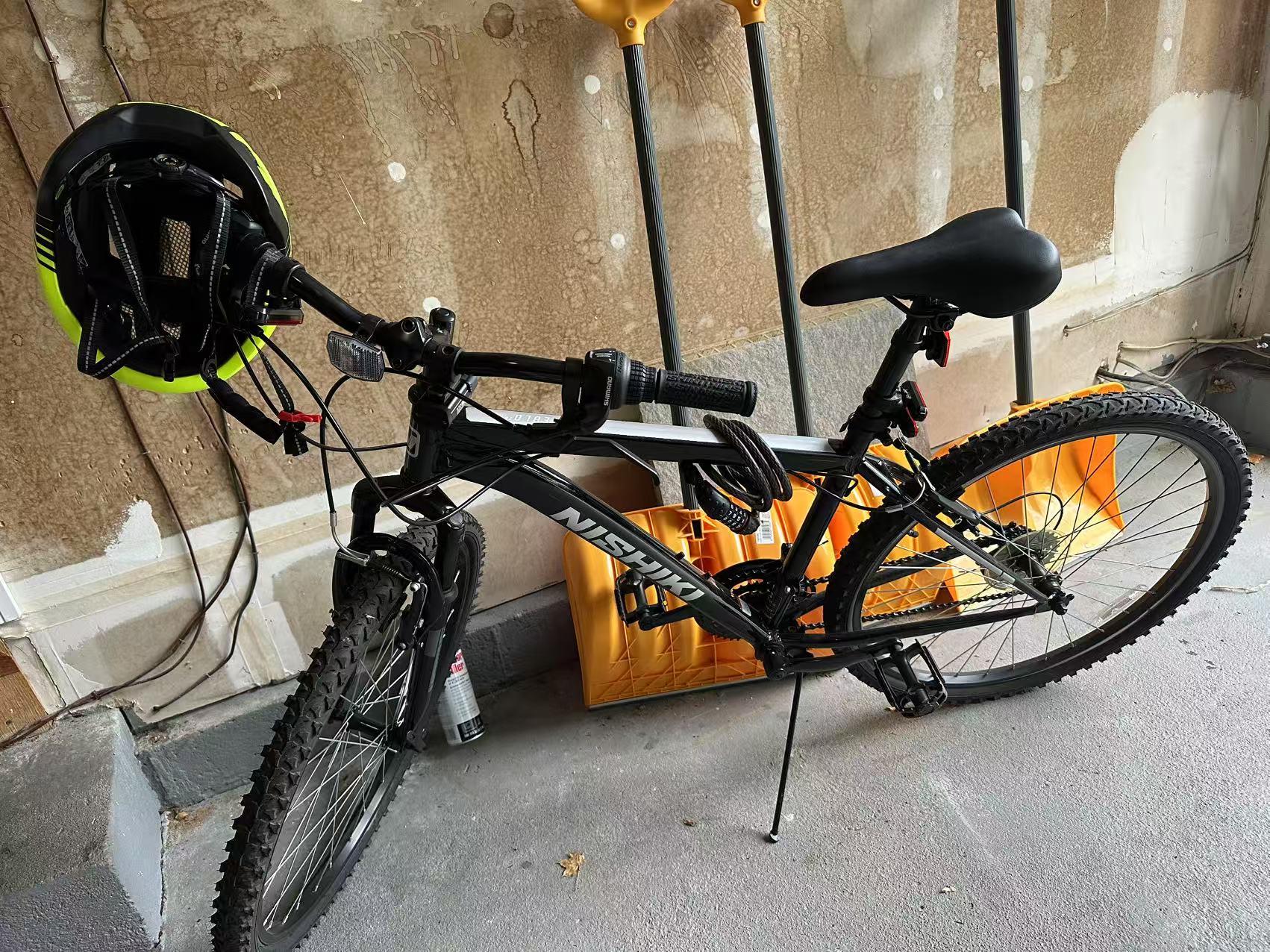 第一辆山地车买了一年,骑了不到半年,冬天开始天气太冷就没有骑过。配防护帽和前后LED车灯。原价200,准备卖70。