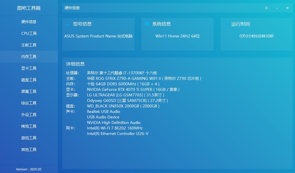 内存:64GB DDR5 6000MHz(16GB×4)