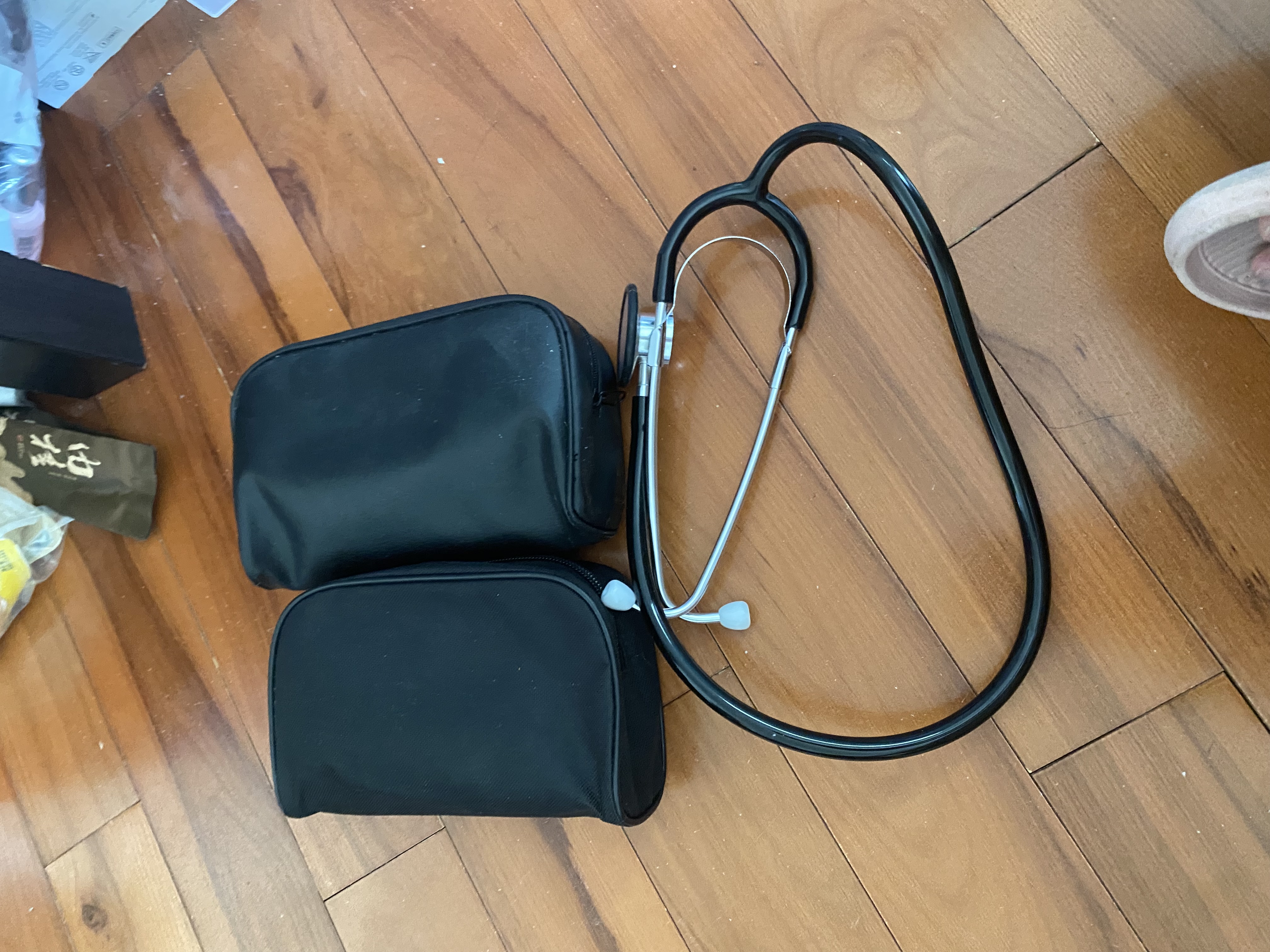 两个blood pressure cuff和一个听诊器