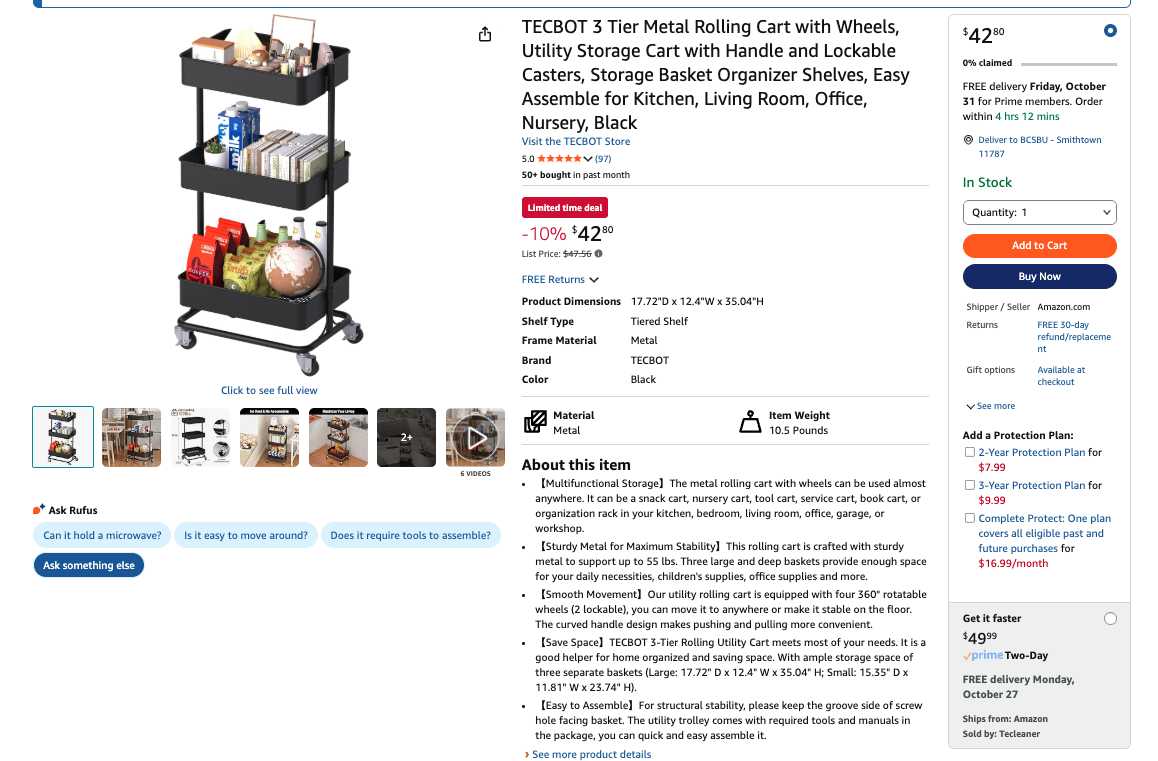 全新收纳置物小推车 未开箱