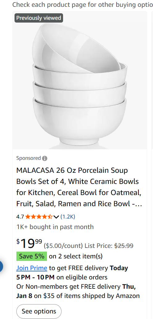 7. 白色陶瓷碗2个(原价$10,现价$5),