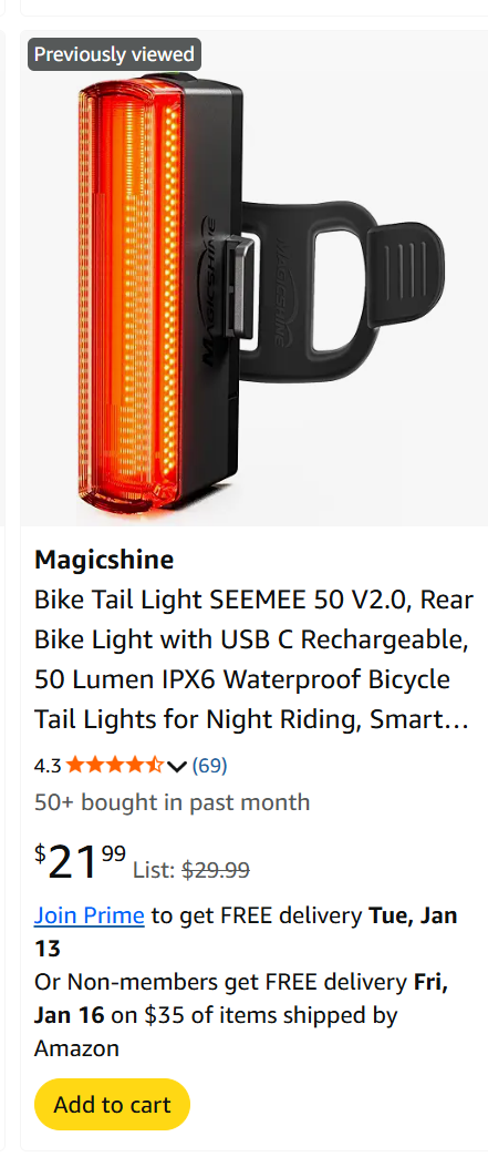 11. 带包装自行车尾灯,几档闪烁模式,原价税前$22,现价$12.