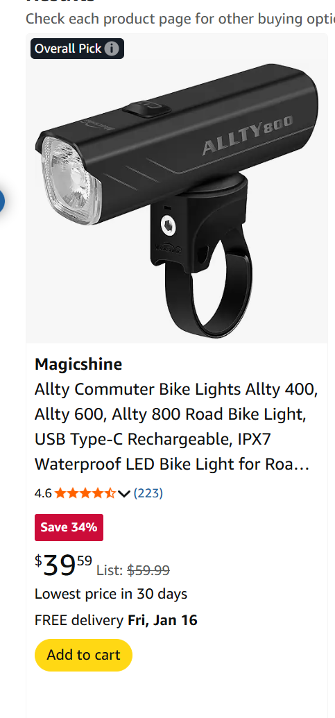 10. 带包装自行车手电,三档亮度,带支架固定在自行车把手上,原价税前$40,现在$30。