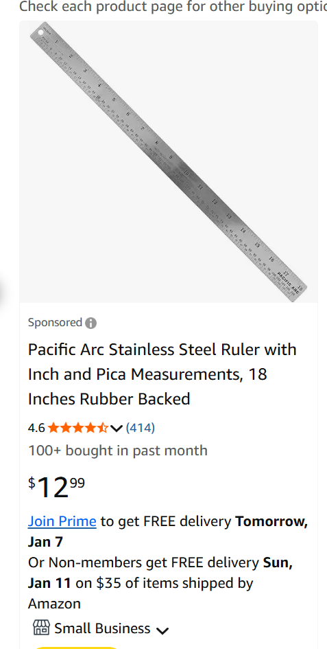 8. 18 inch=55cm 不锈钢直尺, 原价$14,现在 $4