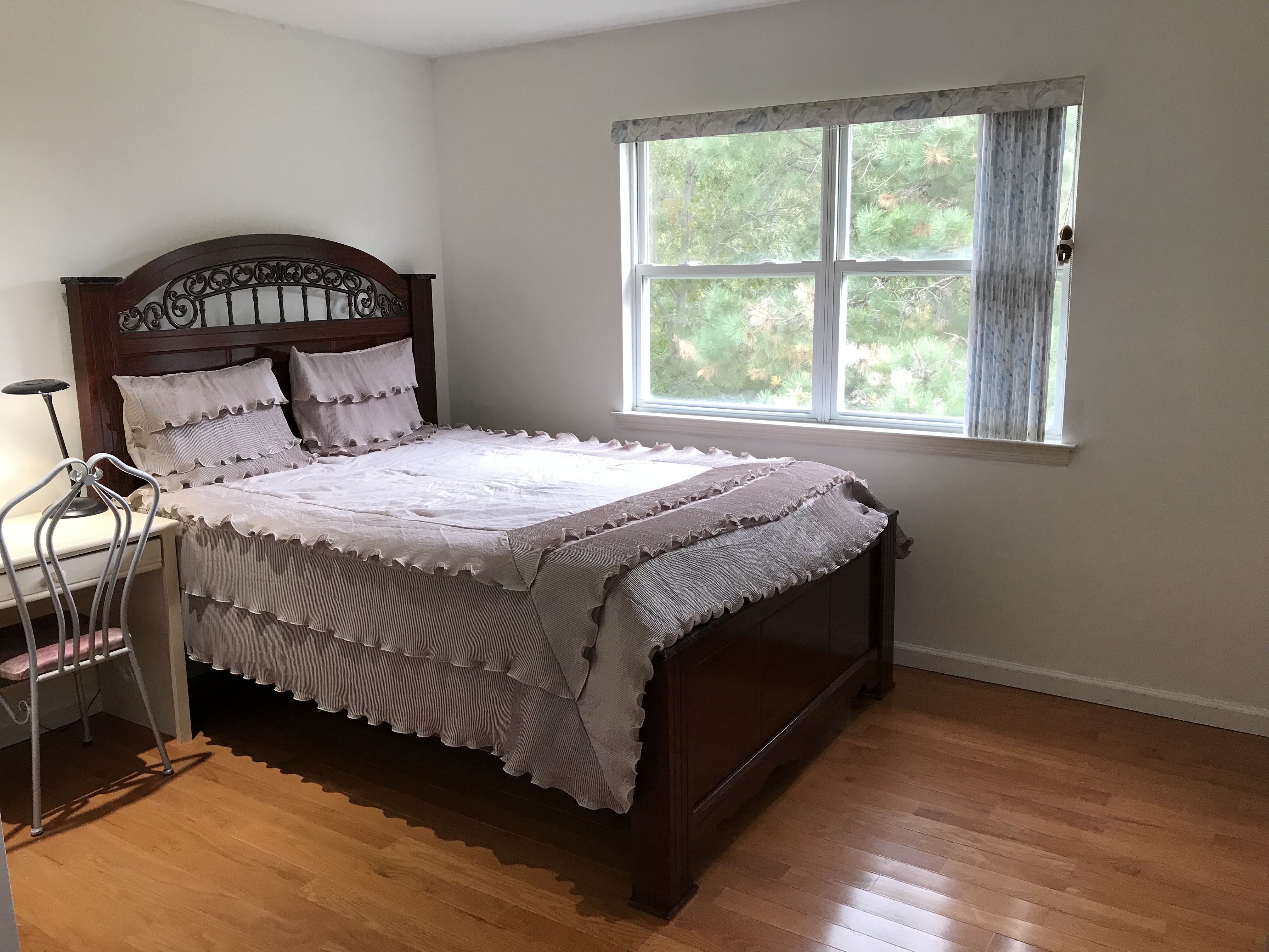 该房子位于五星级管理独栋别墅小区内,有前后大花园。房间约170尺,带大南风窗与大衣柜,配高级Queen Size双人床、书桌、椅子和台灯,免费提供水电煤暖网、洗干衣和车位,近LIE62和63出口,离SBU10迈,可自炊、也可包晚餐,经业主同意可开party,适合有车人士,还可提供户内车位,月租$900(晚餐和户内车位另计)。电/微业主:631-703-8968/S10049276。